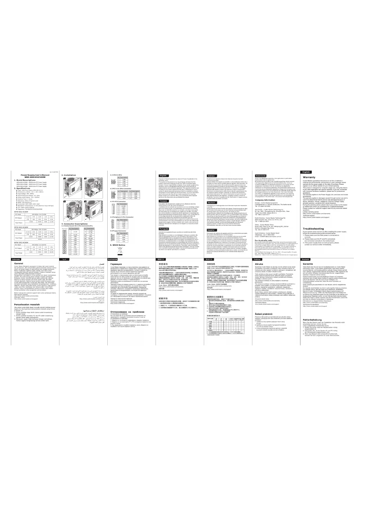 MWE 400 - Alimentation (PC) COOLER MASTER - Notice d'utilisation et mode d'emploi gratuit