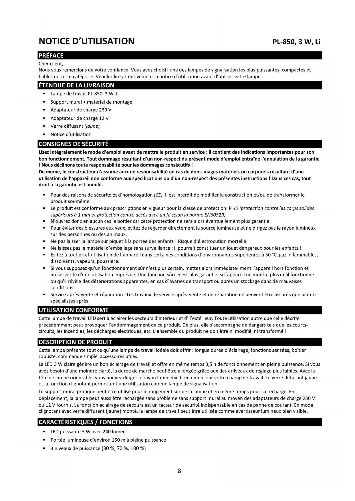 Nous you remercions de vour confiance. You avez choisi l'une des lampes de signalisation les plus puissantes, compactes et fiables de cette categore. Veuillez dire attentivement la notice d'utilisation avant d'utiliser voit lampe.