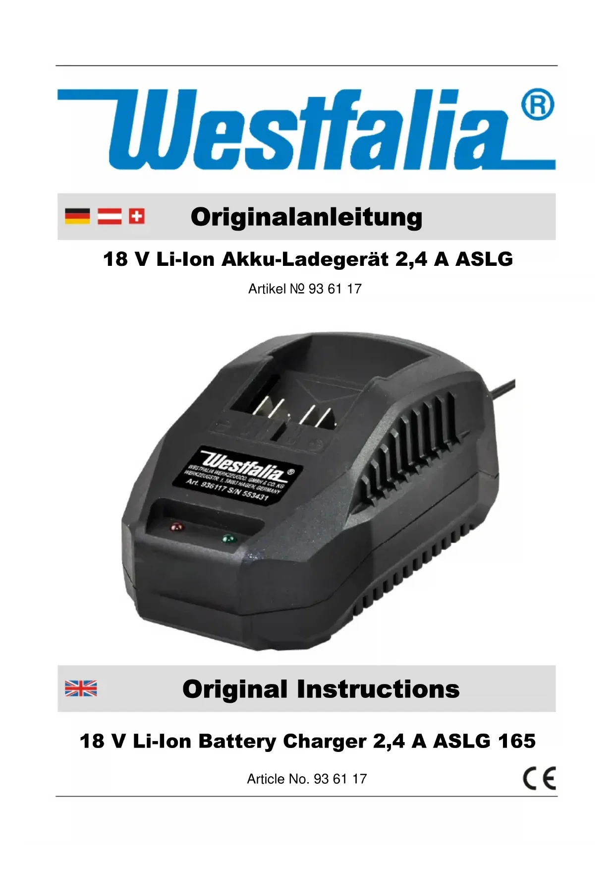 Téléchargez la notice de votre Chargeur de piles au format PDF gratuitement ! Retrouvez votre notice ASLG 165 - Westfalia et reprennez votre appareil électronique en main. Sur cette page sont publiés tous les documents nécessaires à l'utilisation de votre appareil ASLG 165 de la marque Westfalia.