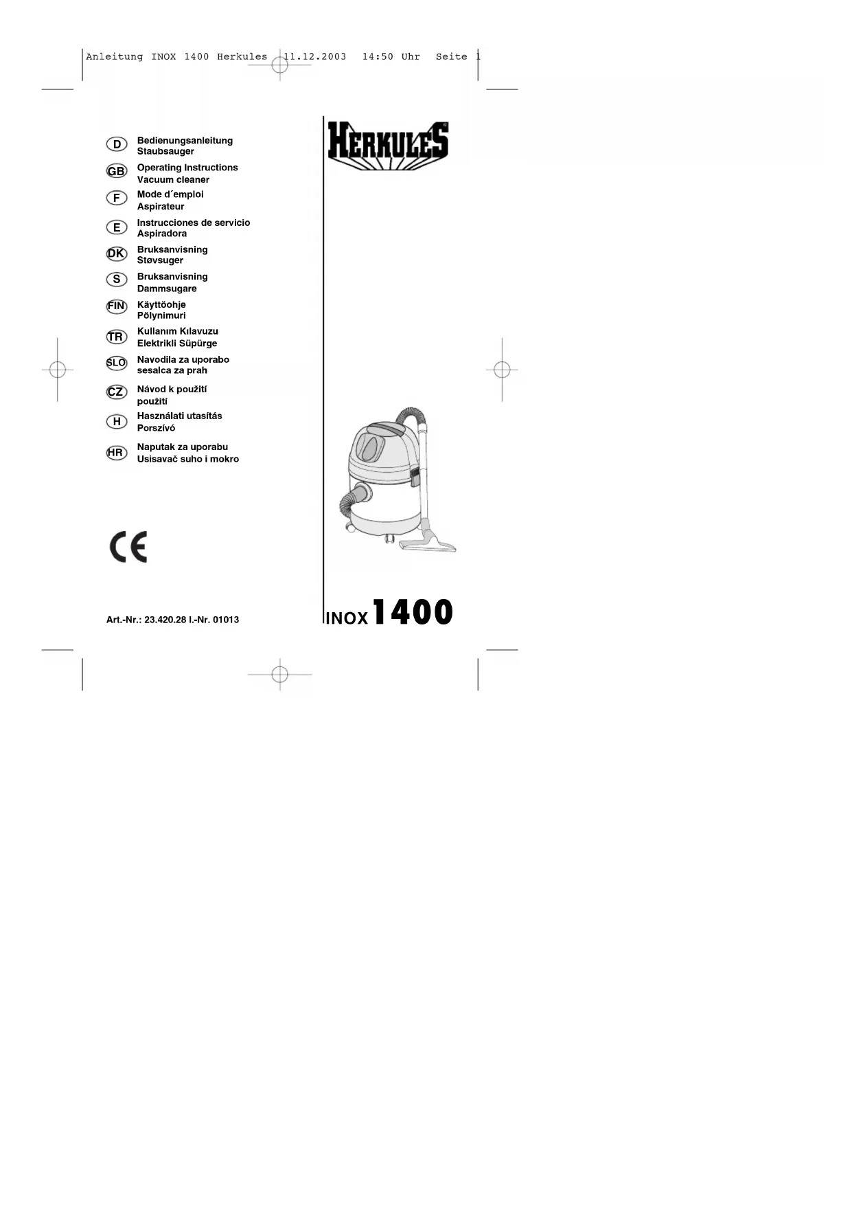 Retrouvez gratuitement la notice de l'appareil INOX 1400 Herkules au format PDF.