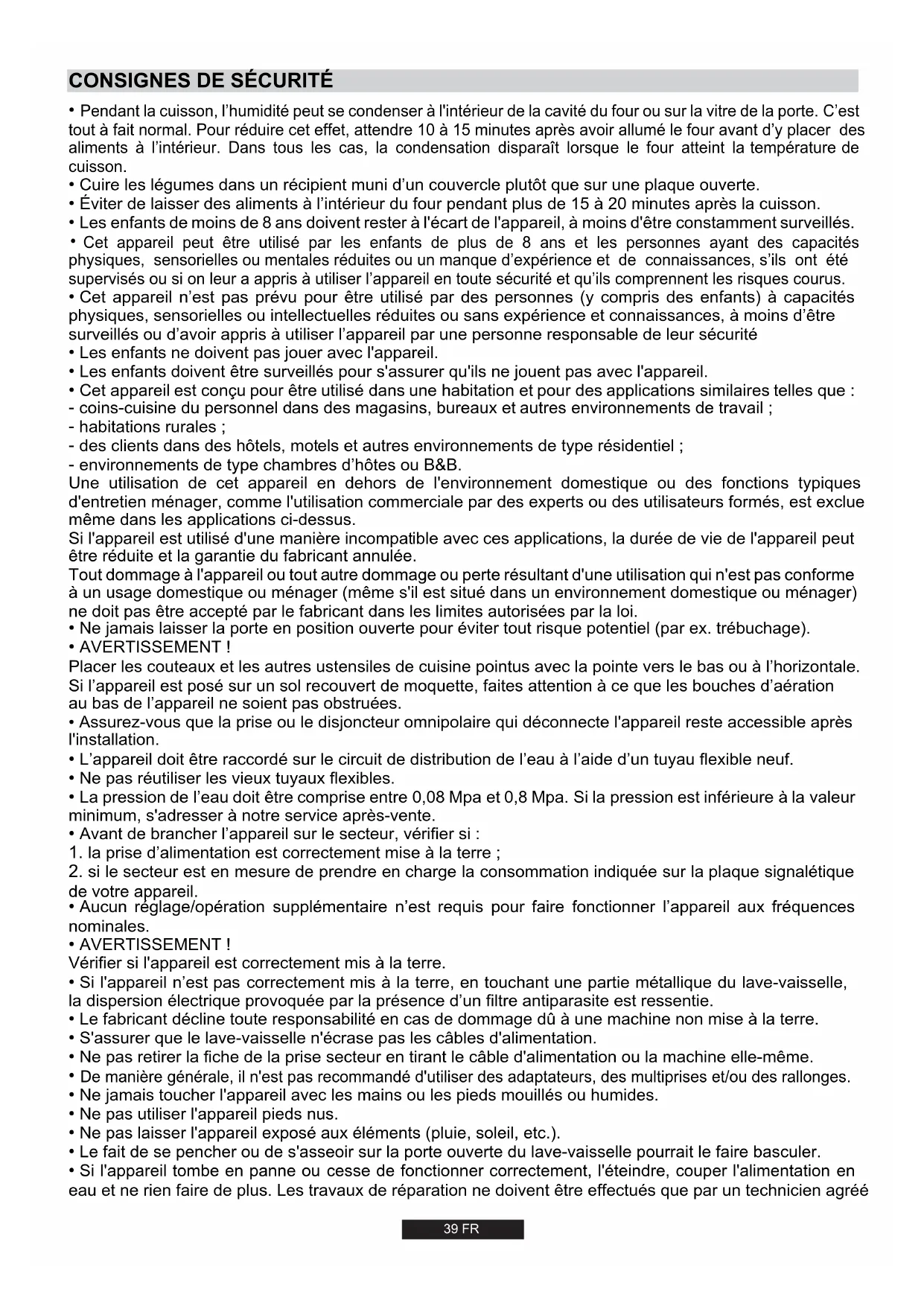 NE PAS OUBLIER ! Le four et le lave-vaisselle ne peuvent pas être utilisés en même temps.