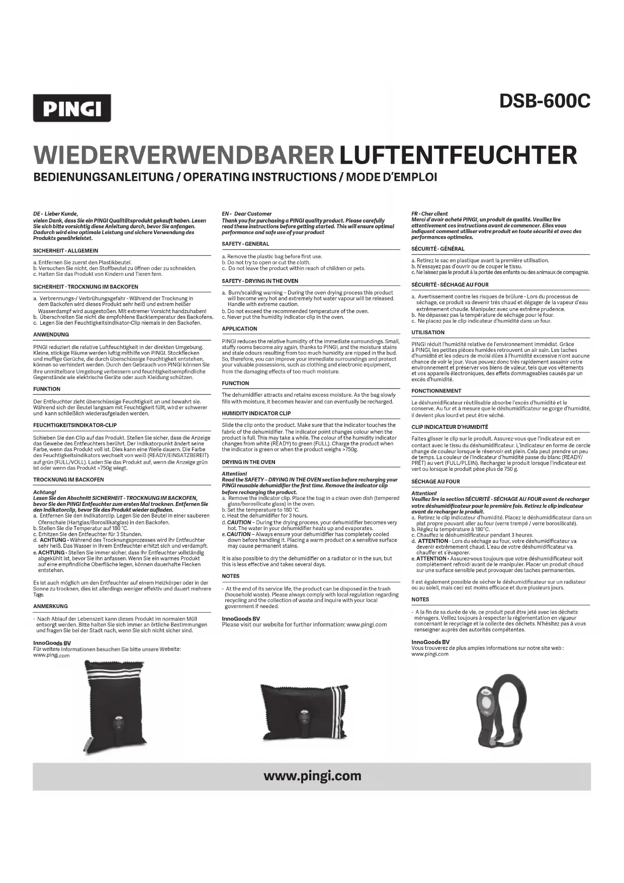 DSB600C - Déshumidificateur Pingi - Notice d'utilisation et mode d'emploi gratuit