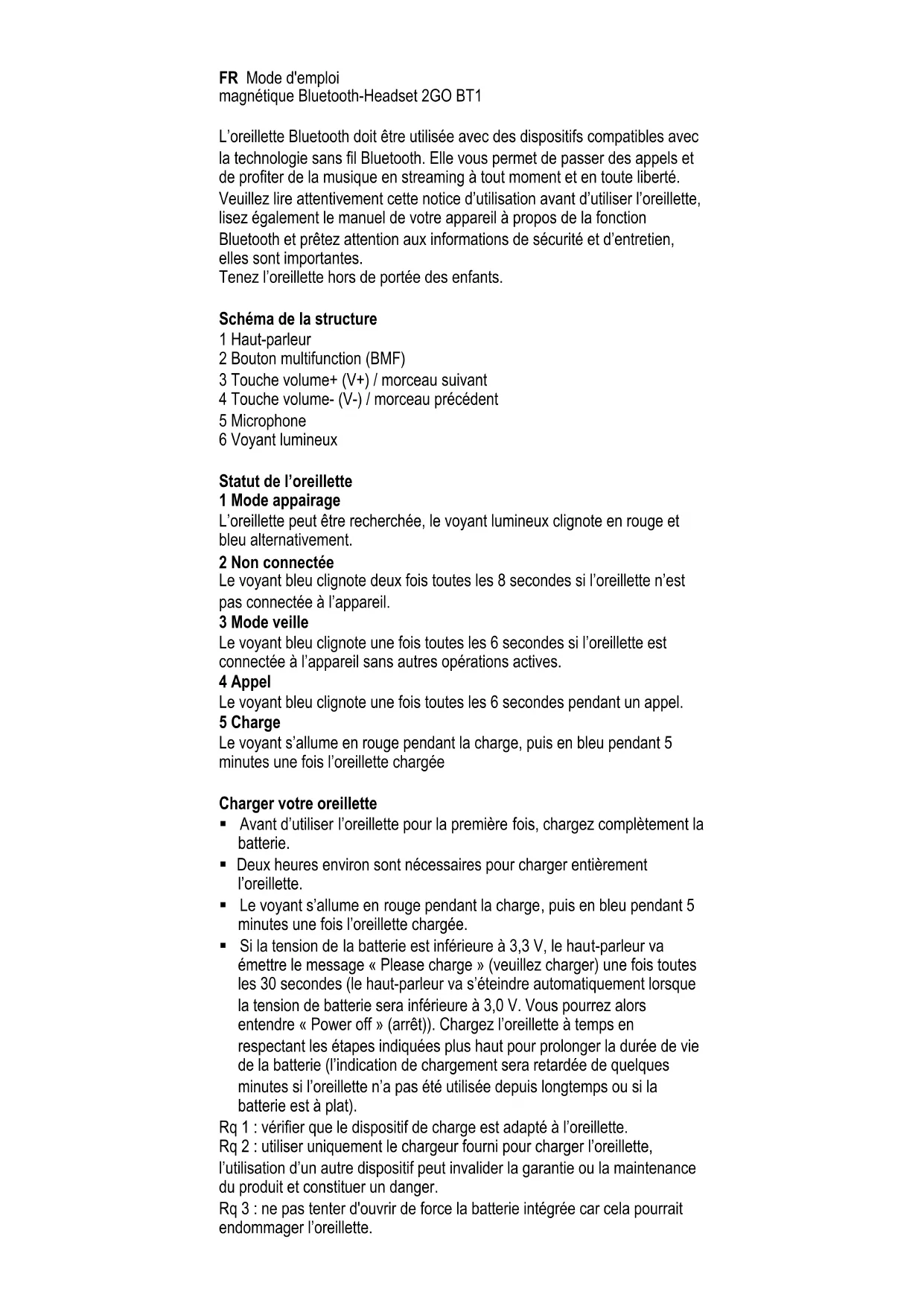 Active BT1 - Casque 2GO - Notice d'utilisation et mode d'emploi gratuit