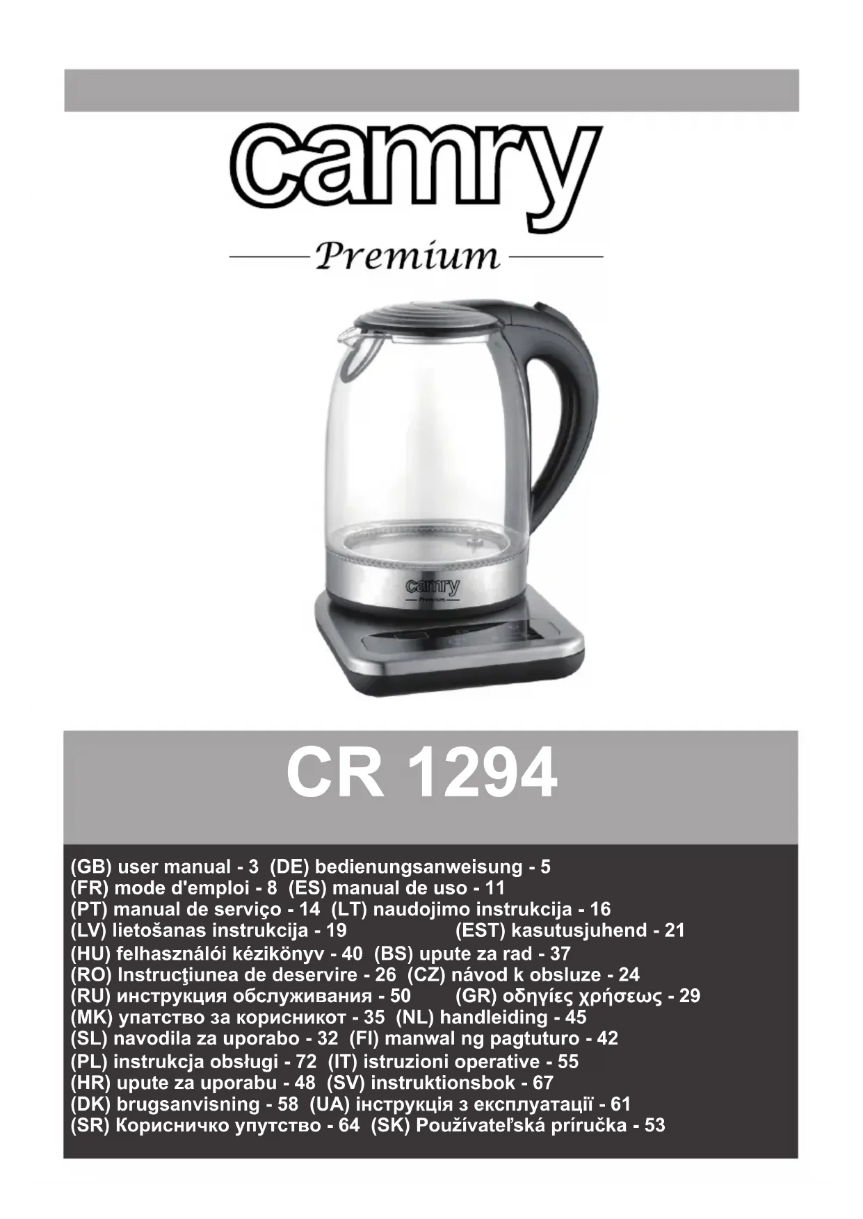 CR 1294 - Appareil à thé CAMRY - Notice d'utilisation et mode d'emploi gratuit