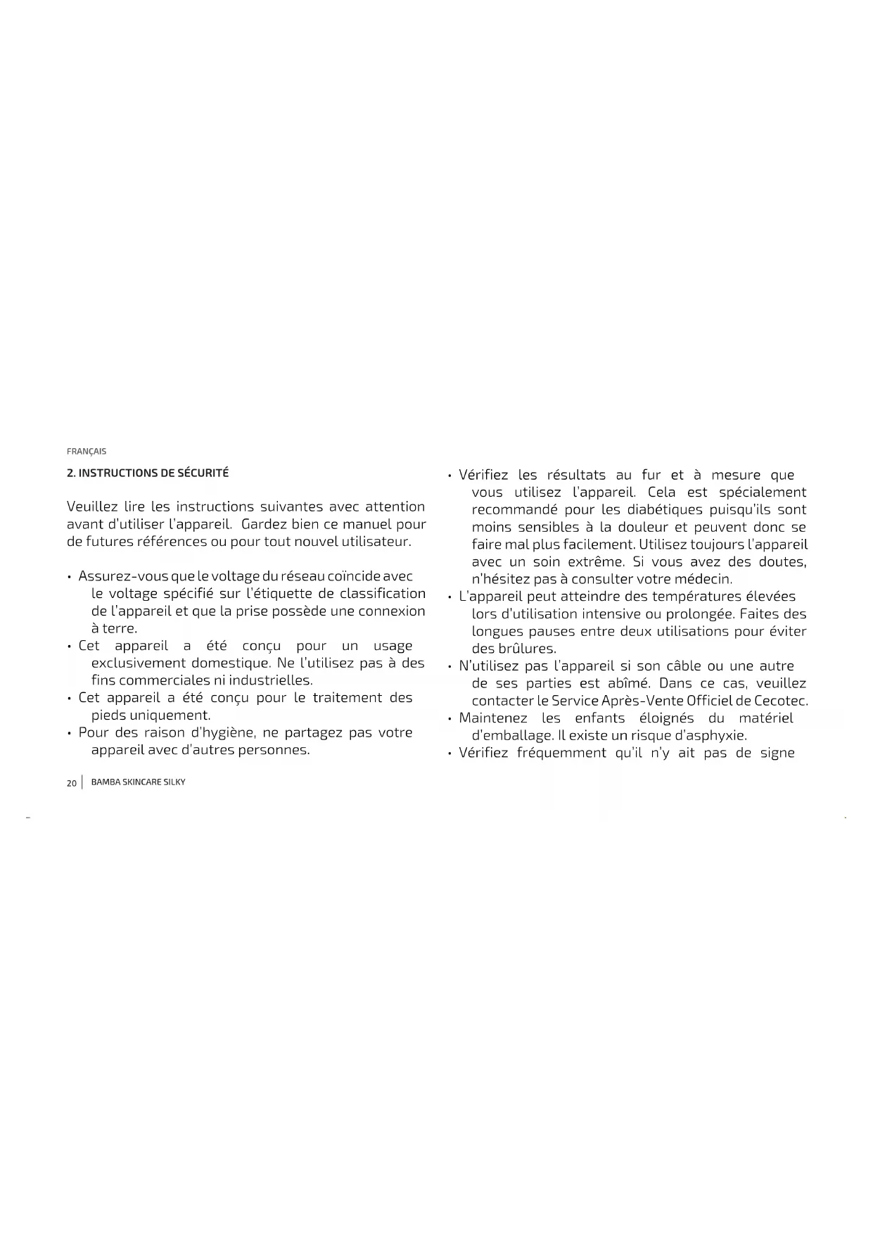 Retrouvez gratuitement la notice de l'appareil Bamba SkinCare Silky CECOTEC au format PDF.