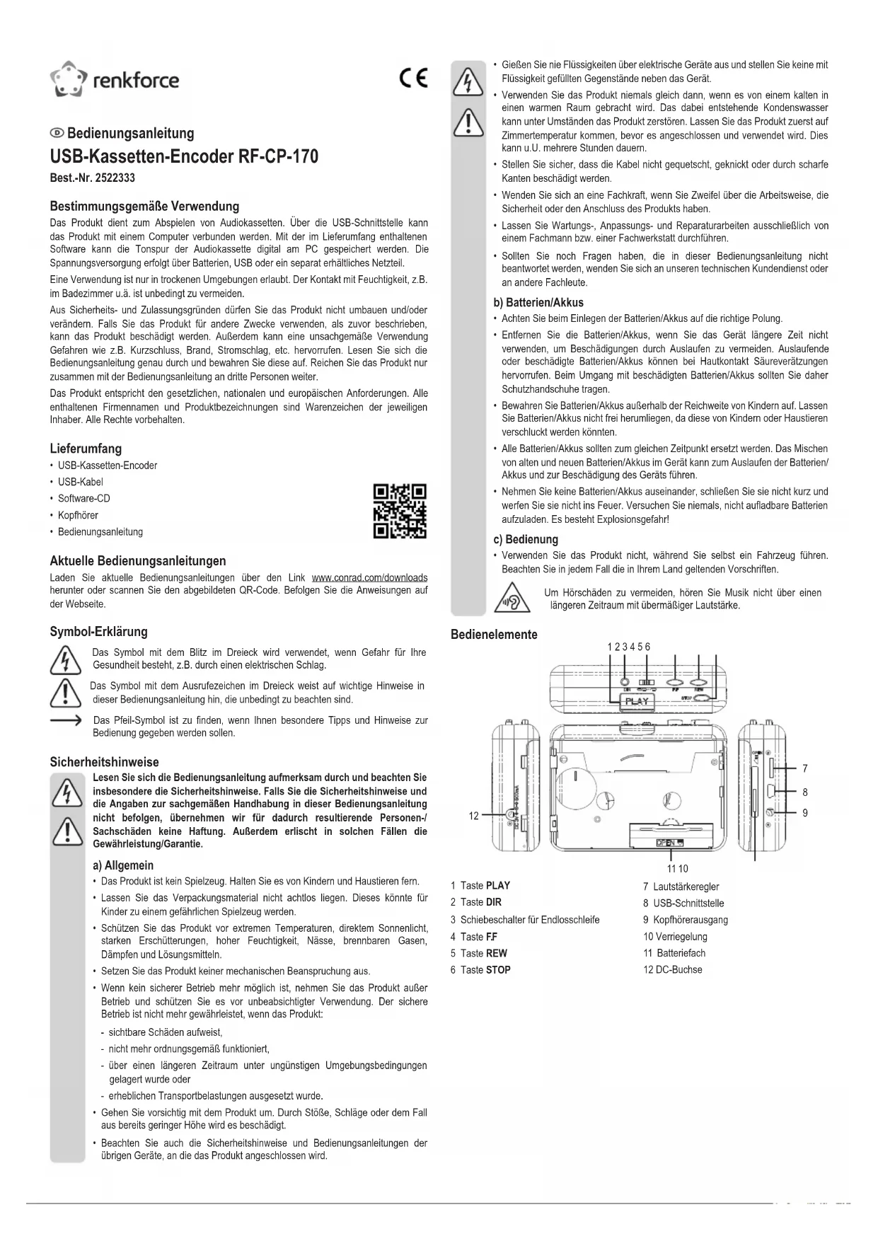 RFCP170 - Magnétocassete Renkforce - Notice d'utilisation et mode d'emploi gratuit