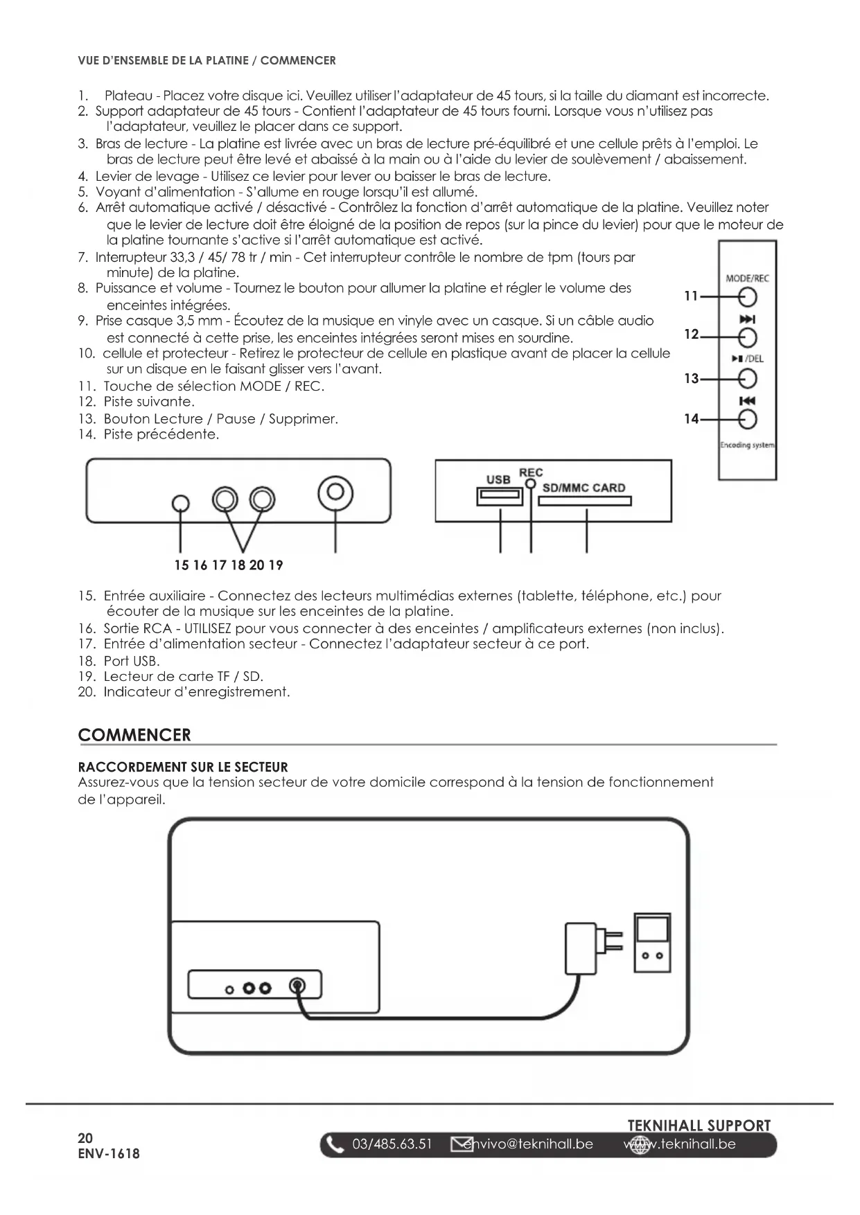 - Plateau - Placez Your disque ici. Veuillez utilisel I'adaptateur de 45 tours, si la taille du diamant est incorre cate.