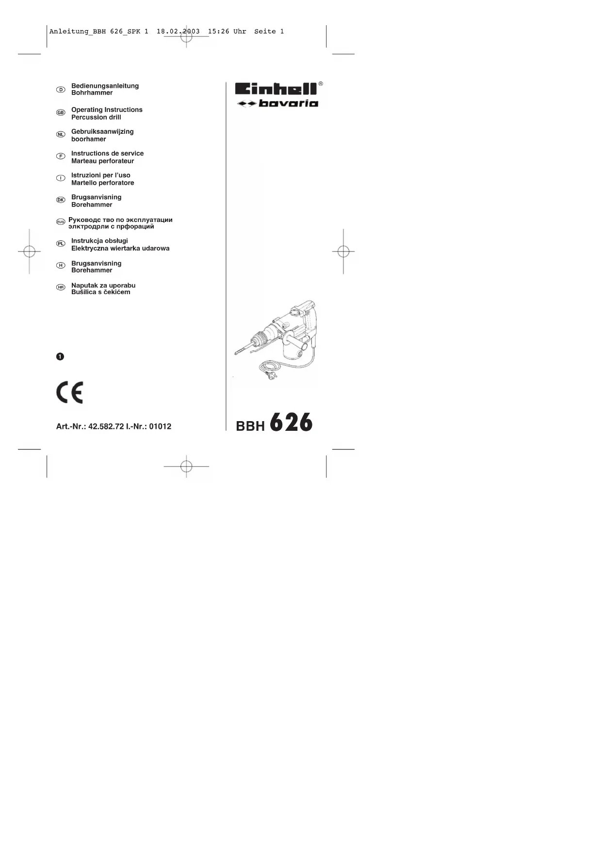 Retrouvez gratuitement la notice de l'appareil BBH 626 EINHELL au format PDF.