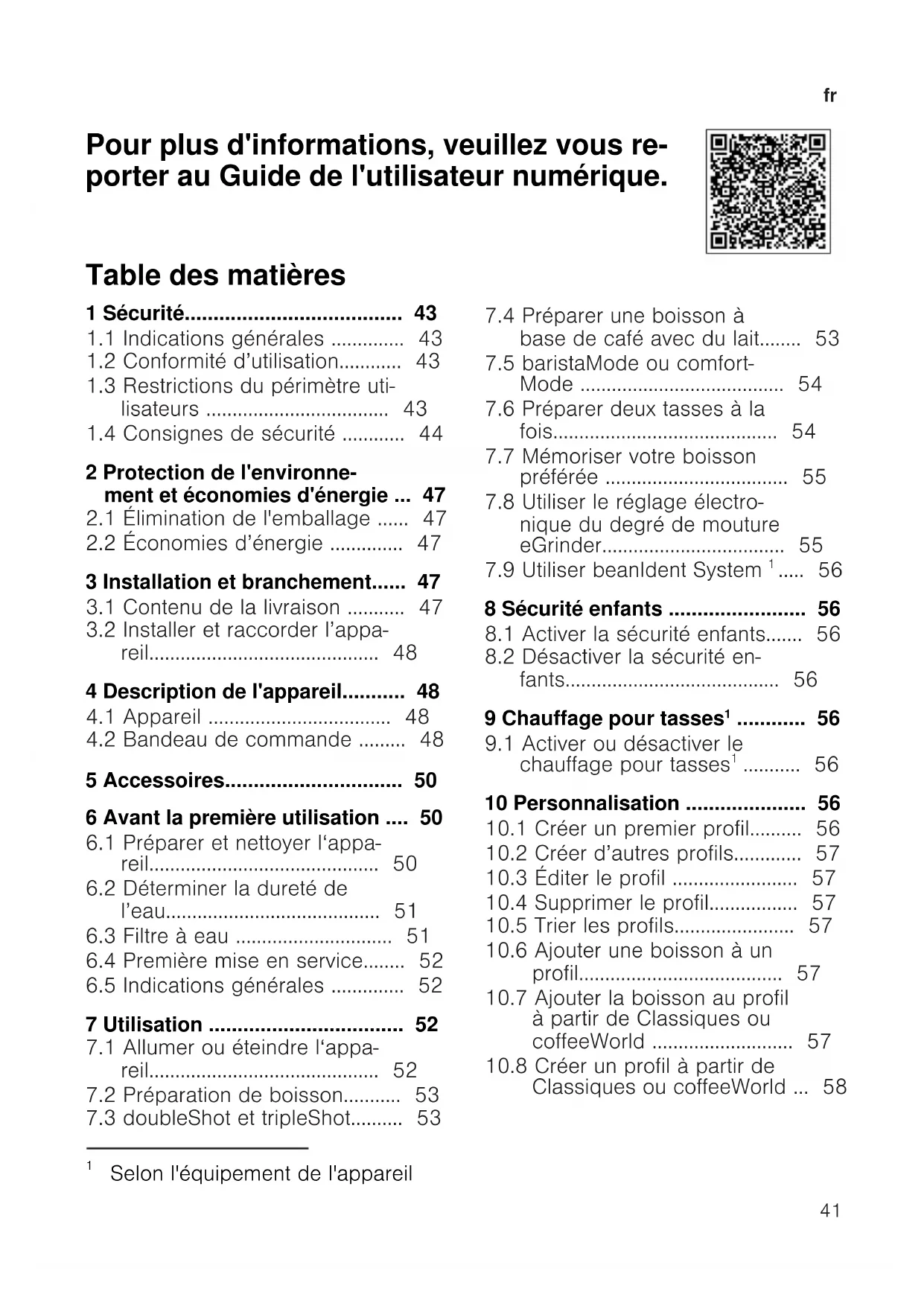 Pour plus d'informations, veuillez vous re- porter au Guide de l'utilisateur numérique. Table des matières 1 Sécurité......................................43