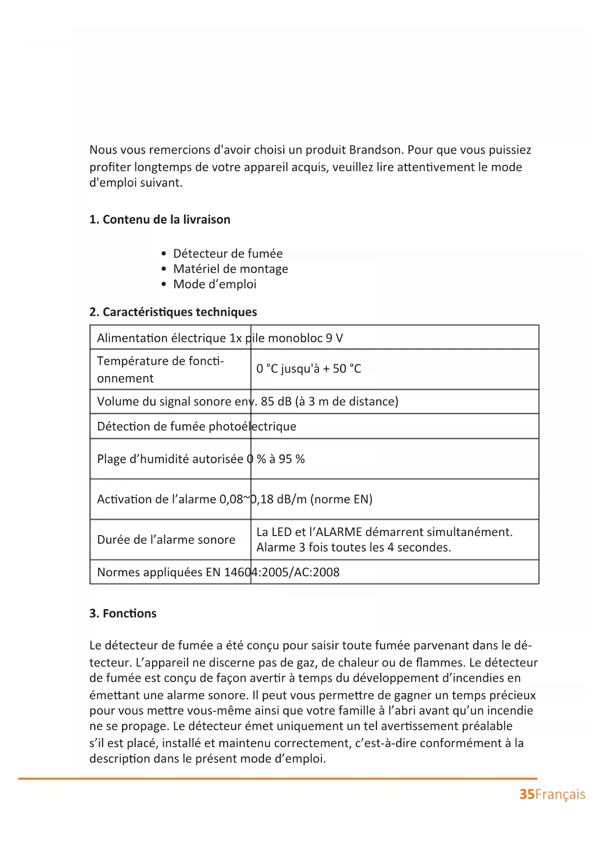 304967 - Détecteur de fumée Brandson - Notice d'utilisation et mode d'emploi gratuit