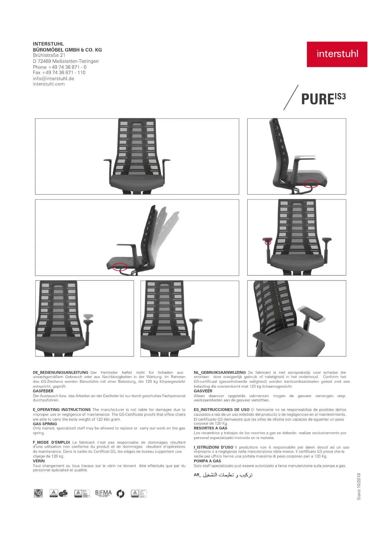 PUREis3 PU113 - Chaise de bureau Interstuhl - Notice d'utilisation et mode d'emploi gratuit