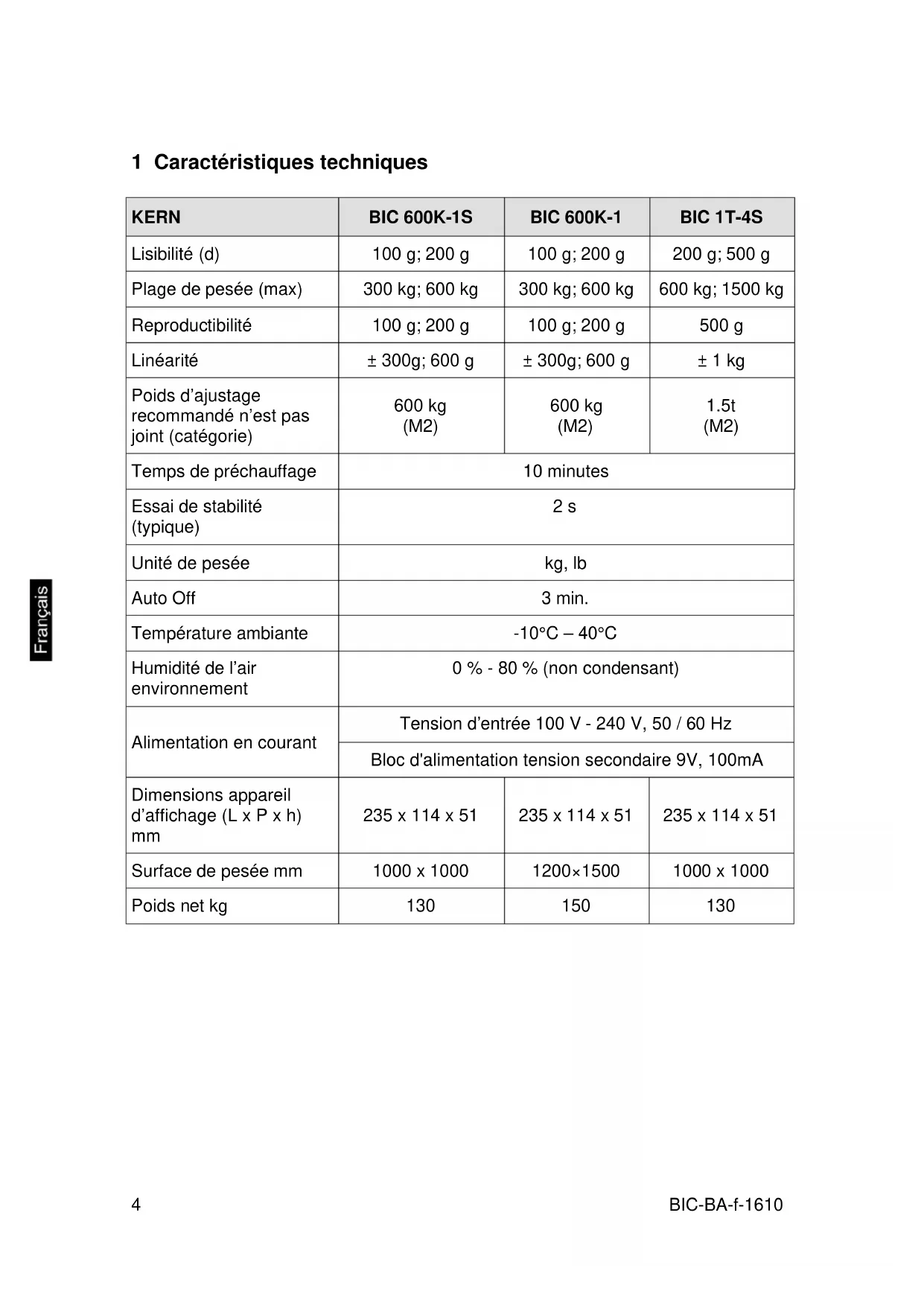 | KERN | BIC 600K-1S | BIC 600K-1 | BIC 1T-4S |