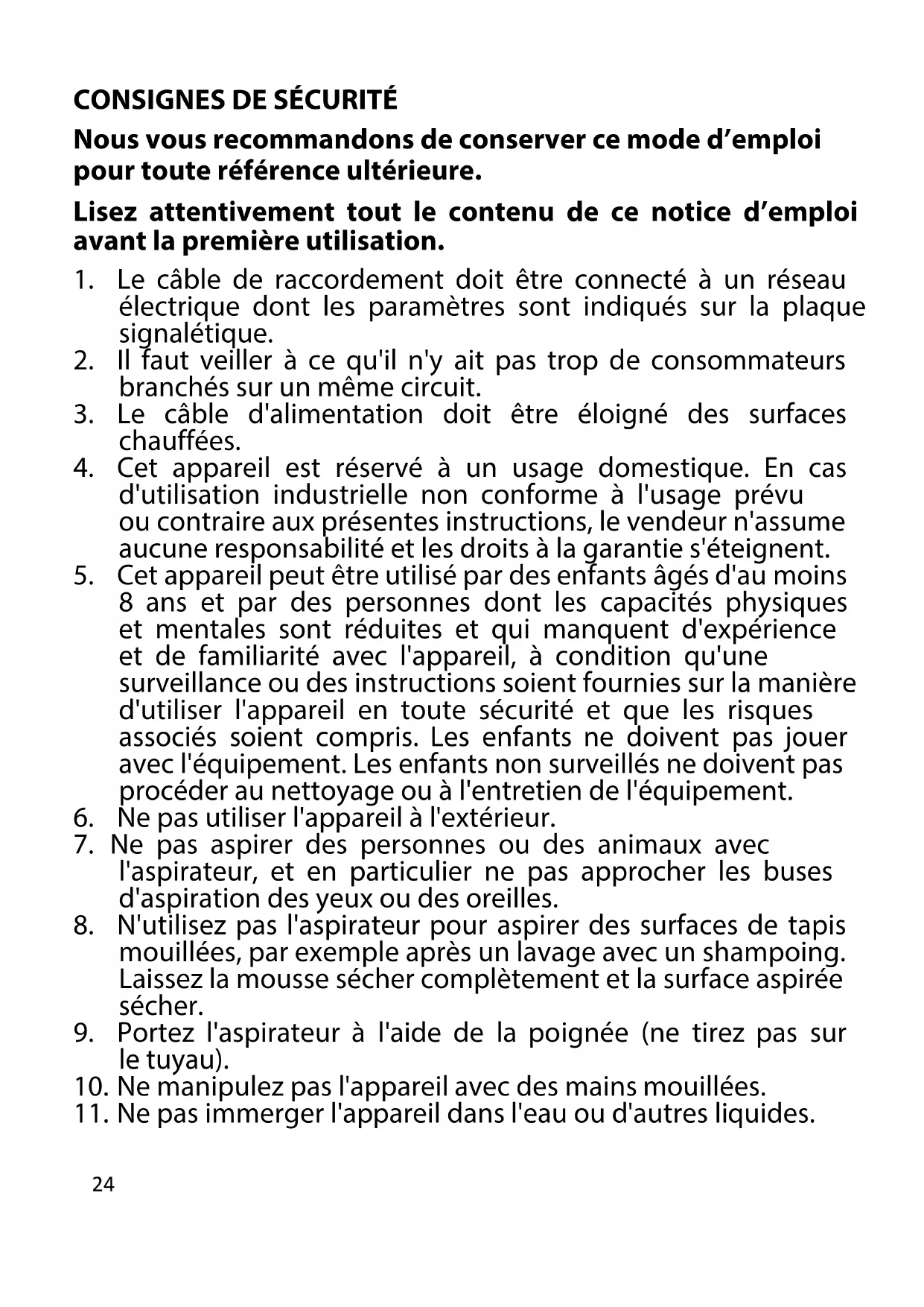 l'aspirateur, et en particulier ne pas approcher les buses d'aspiration des yeux ou des oreilles.