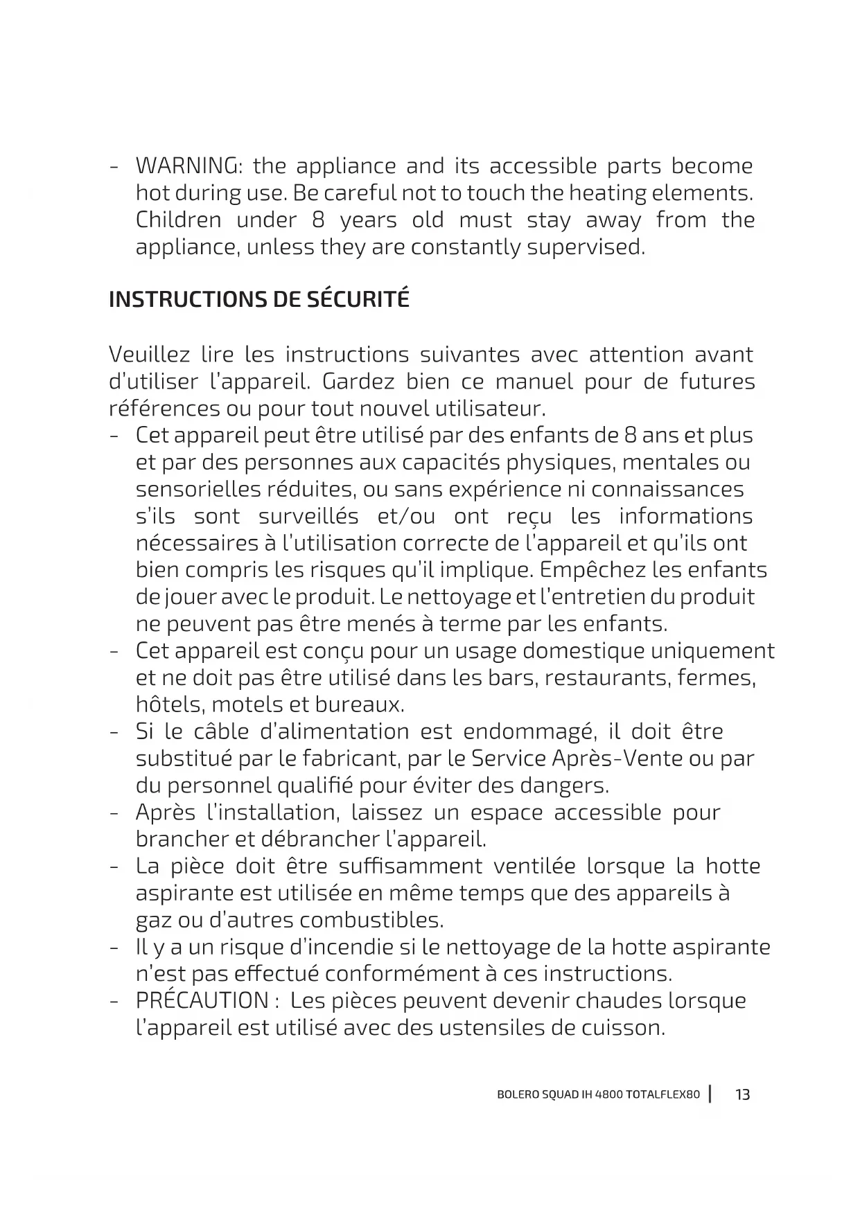 MODE D'EMPLOI Bolero Squad IH 4800 TotalFlex80 CECOTEC