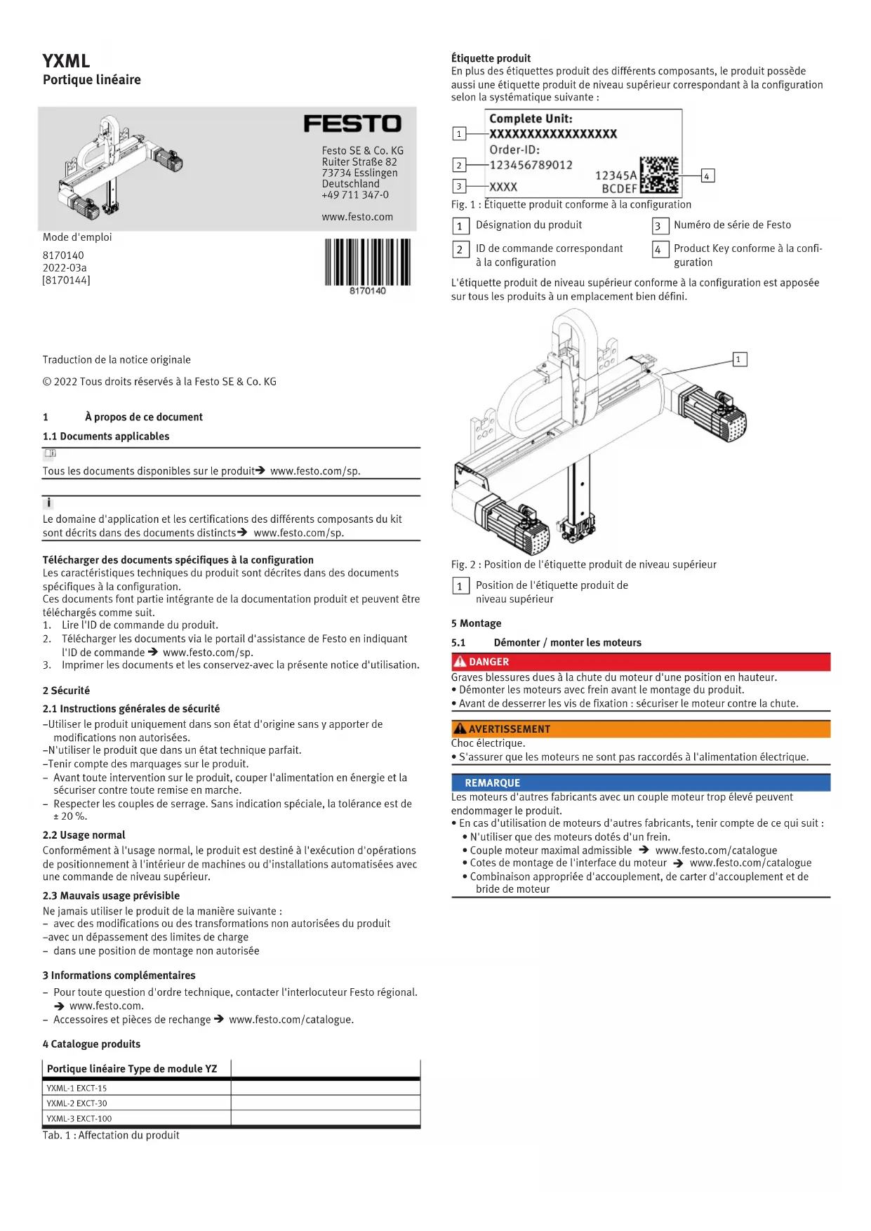 2022-03a [8170144] Traduction de la notice originale © 2022 Tous droits réservés à la Festo SE & Co. KG