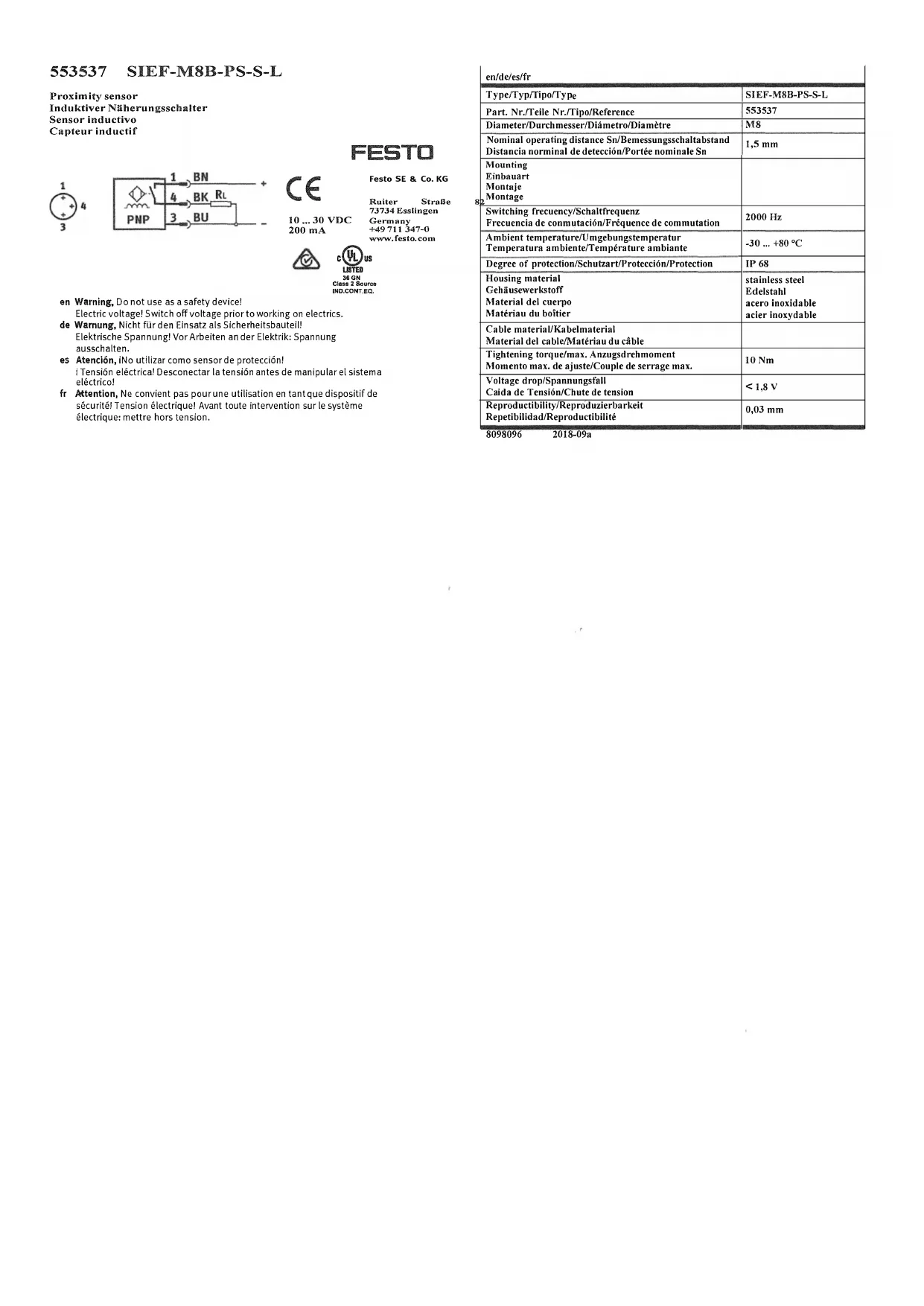 SIEFM8BPSSL - Capteur Festo - Notice d'utilisation et mode d'emploi gratuit