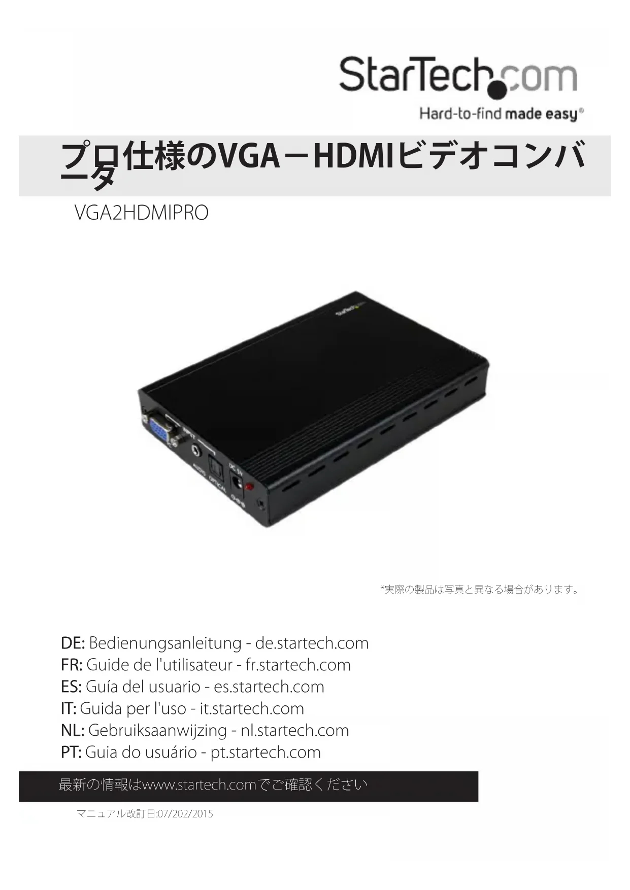 Retrouvez gratuitement la notice de l'appareil VGA2HDMIPRO StarTech.com au format PDF.