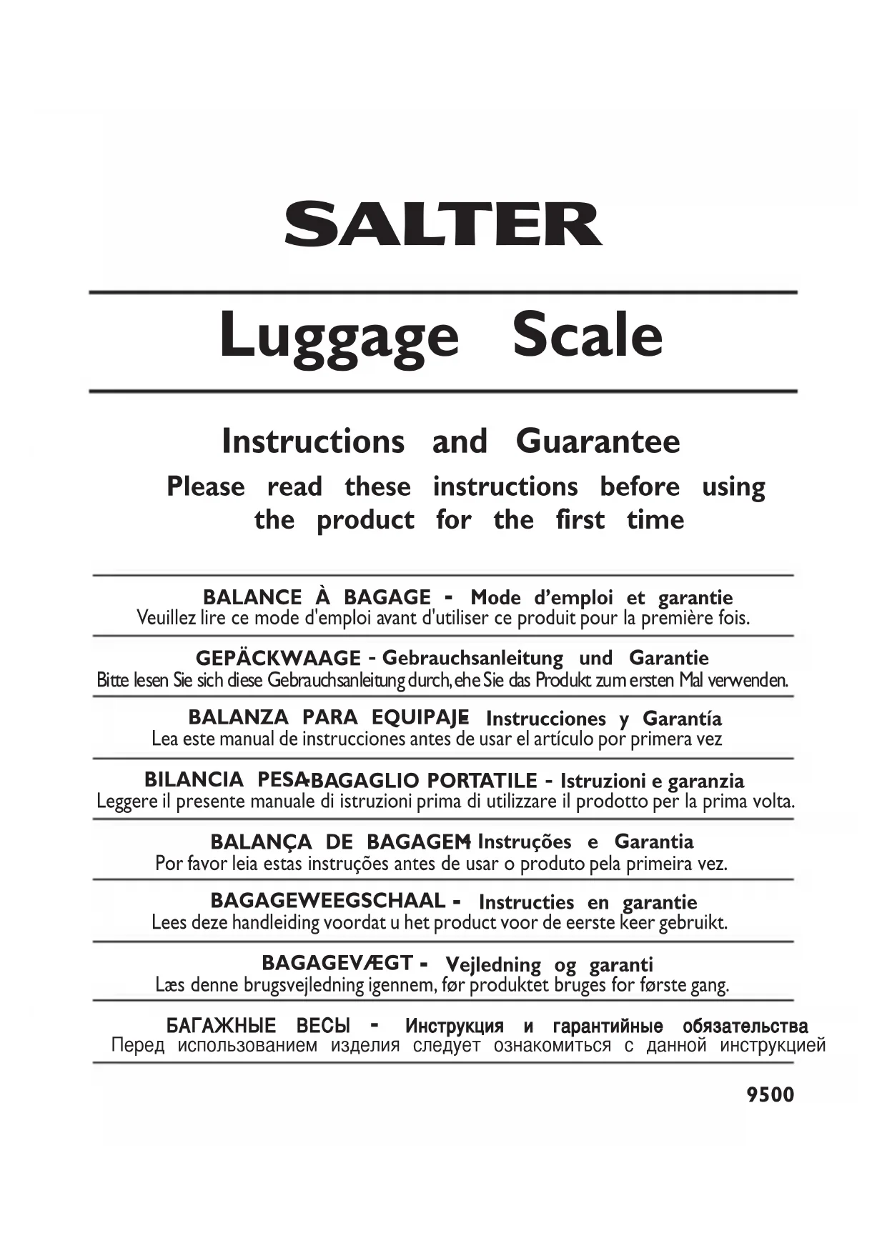 - Das Gepäck nicht ruckartig anheben. Abbildung 1 GARANTIE Ce produit est uniquement destiné à un usage domestique. Salter s’engage à réparer ou remplacer gratuitement le produit, ou toute pièce de ce produit, (à l’exclusion des piles) dans les 5 ans suivant la date d’achat s’il est prouvé que la défaillance provient d’une mauvaise qualité de fabrication ou de matériaux défectueux. Cette garantie couvre les parties mobiles qui affectent le fonctionnement de l’appareil.Elle ne couvre pas toute détérioration esthétique provoquée par l’usure normale ou tout dommage provoqué par accident ou une mauvaise utilisation. Le fait d’ouvrir ou de démonter l’appareil ou ses composants annulera la garantie. Les retours sous garantie doivent être accompagnés du justificatif d’achat et expédiés en port payé à Salter (ou à un agent Salter agréé local, si en dehors du R.-U.) Il est conseillé de bien emballer l’appareil afin de ne pas l’endommager durant le transport.Salter n’est pas responsable des frais pour tout bagage d’un poids excédentaire.Salter n’est pas responsable des accidents liés au levage de votre bagage ou à l’utilisation de la balance de cuisine.Cet engagement vient en complément des droits statutaires du consommateur et n’affecte ces droits en aucun cas. Pour le service après-vente R.-U., contactez HoMedics Group Ltd, PO Box 460, Tonbridge, Kent,TN9 9EW, R.-U..AssistanceTél. n° : (01732) 360783 durant les heures d’ouverture normales du service.Courriel : cservice@homedics.co.uk. Hors R.-U.,contactez votre agent Salter agréé local.