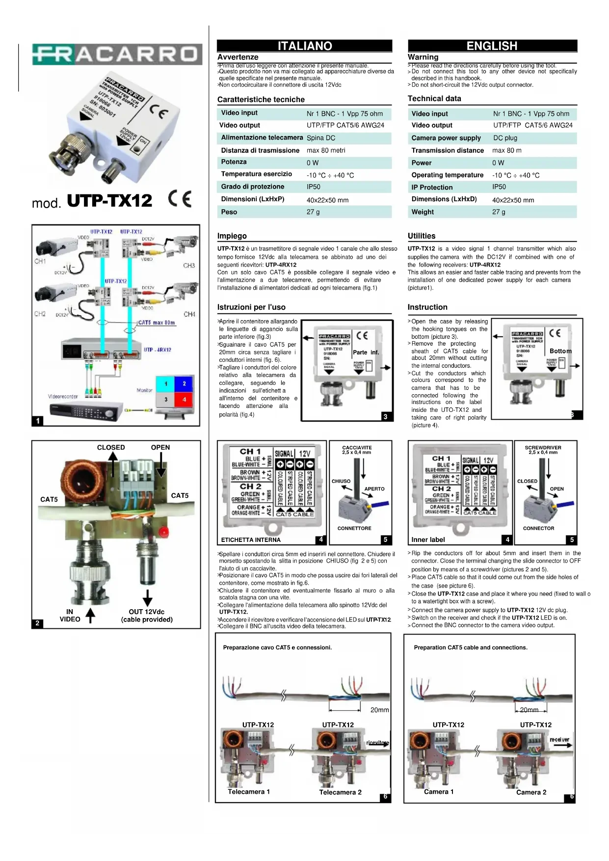 MODE D'EMPLOI UTP4RX12 FRACARRO
