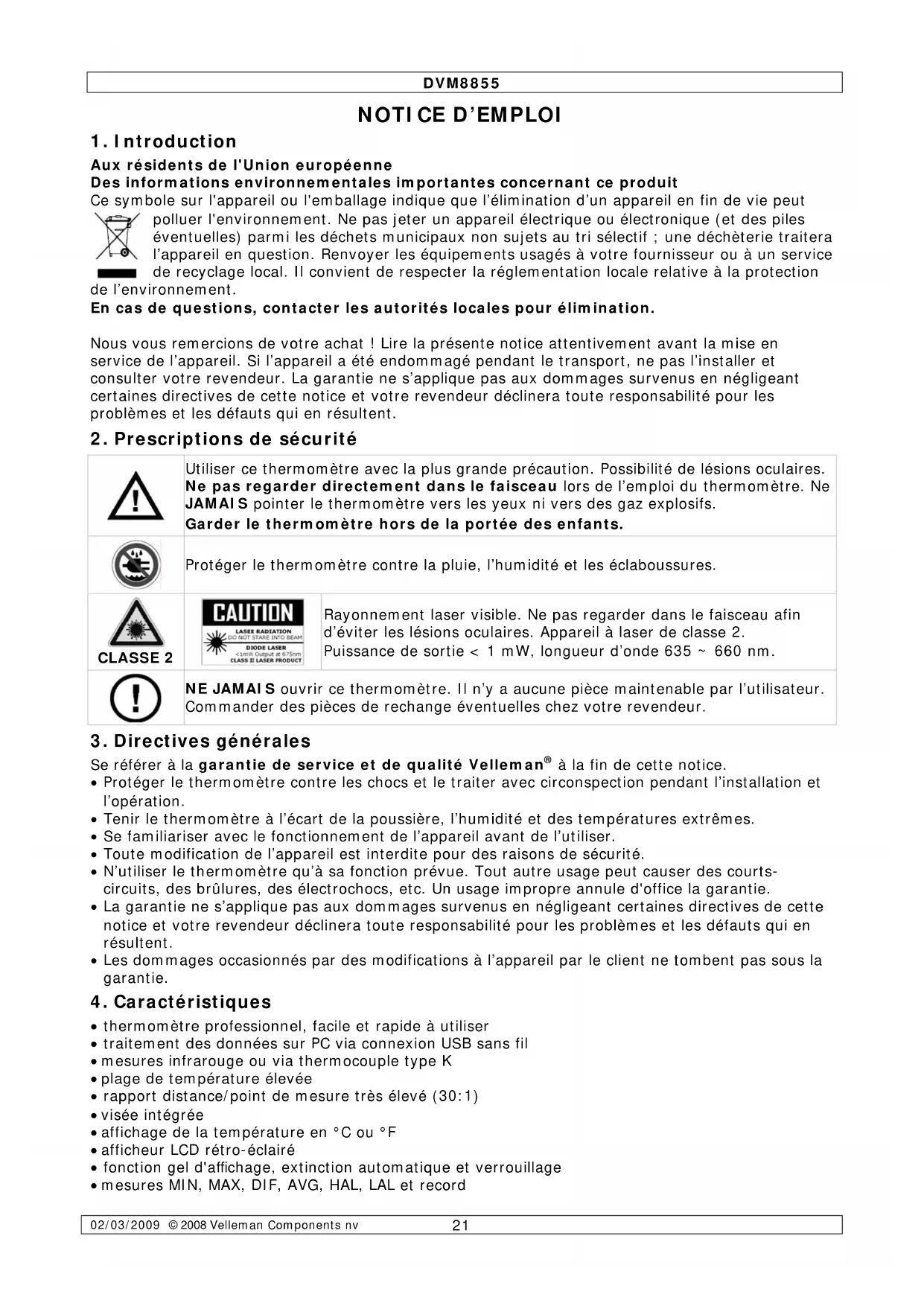Retrouvez gratuitement la notice de l'appareil DVM8855 VELLEMAN au format PDF.