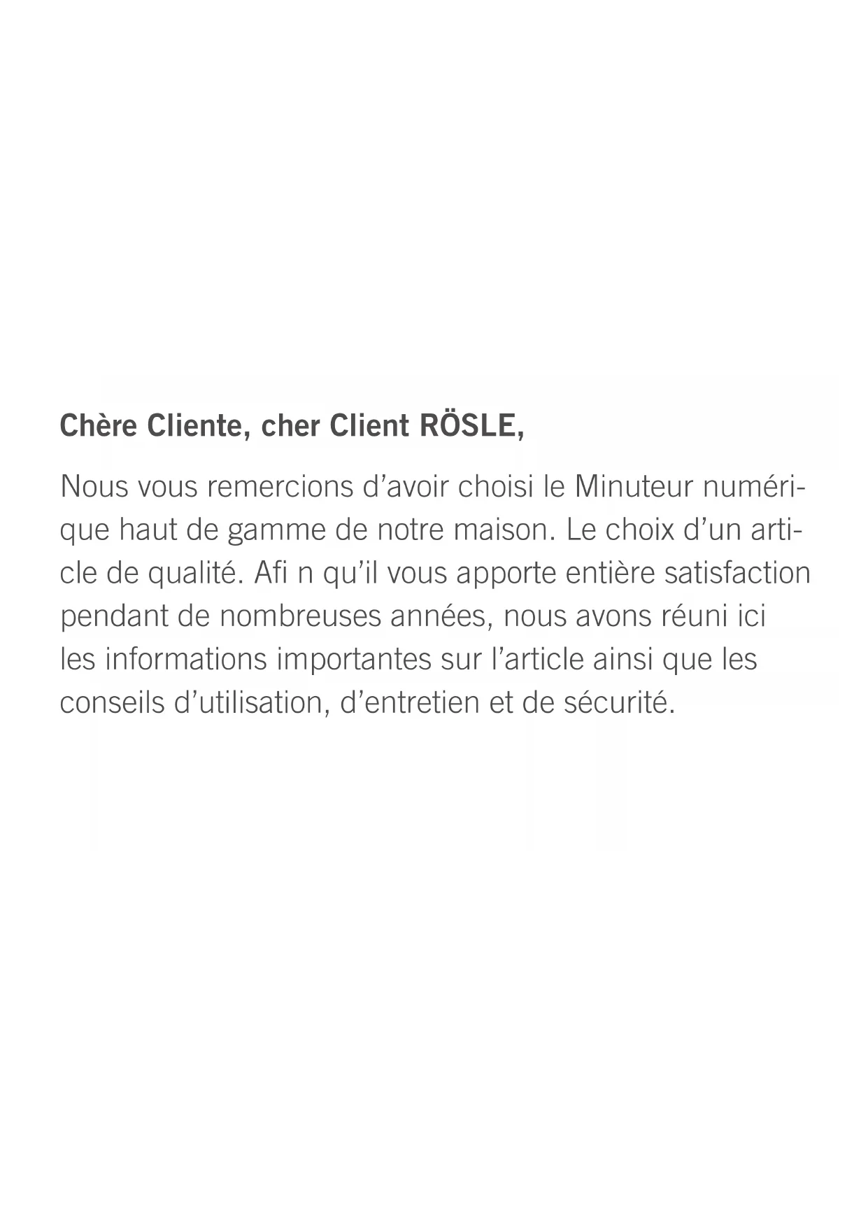 Nous vous souhaitons entière satisfaction et plaisir avec votre nouvel ustensile RÖSLE.