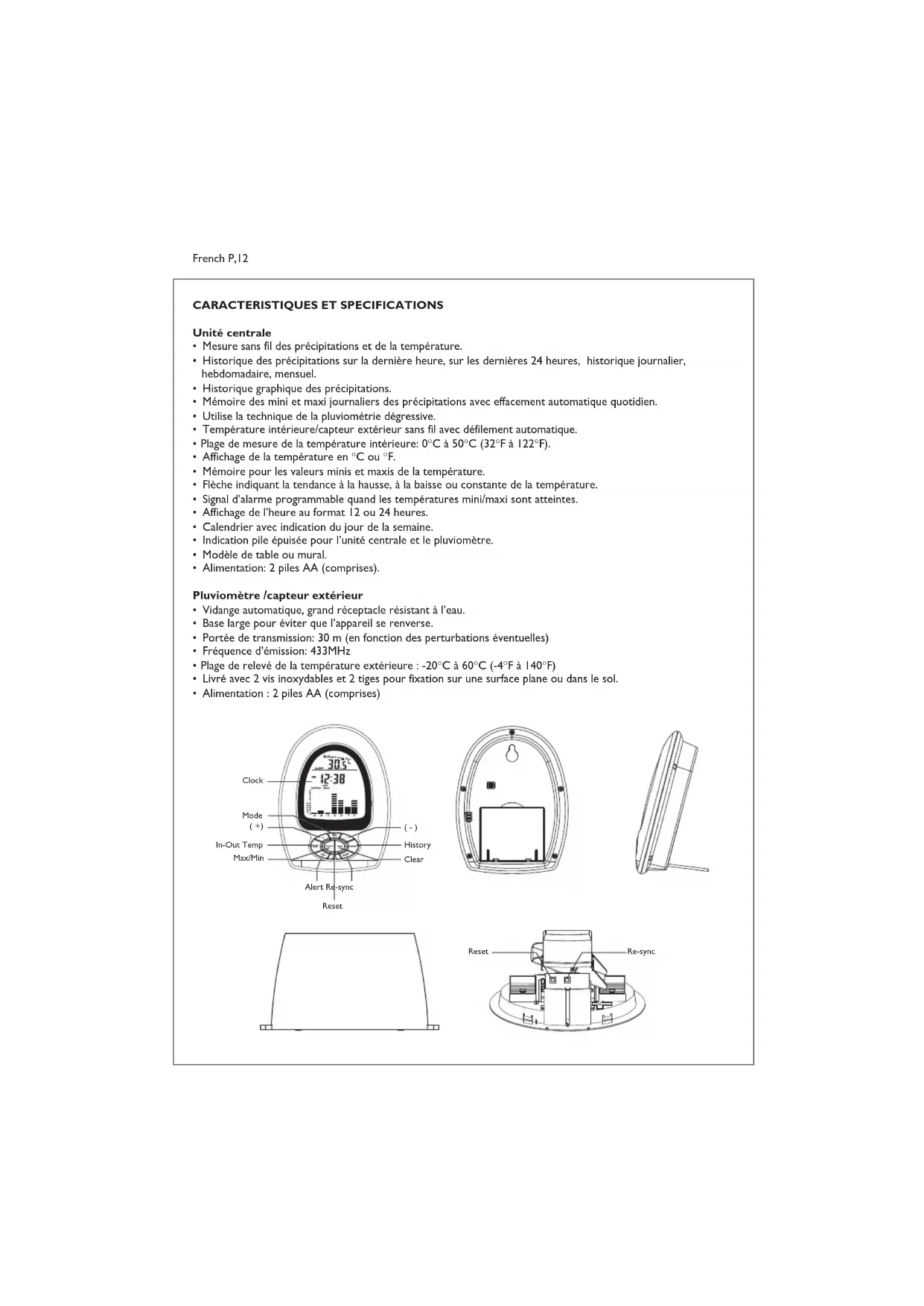 Utilise la technique de la pluviométrie dégressive. - Température interieure/capteur extérieur sans fil avec défilament automatique.