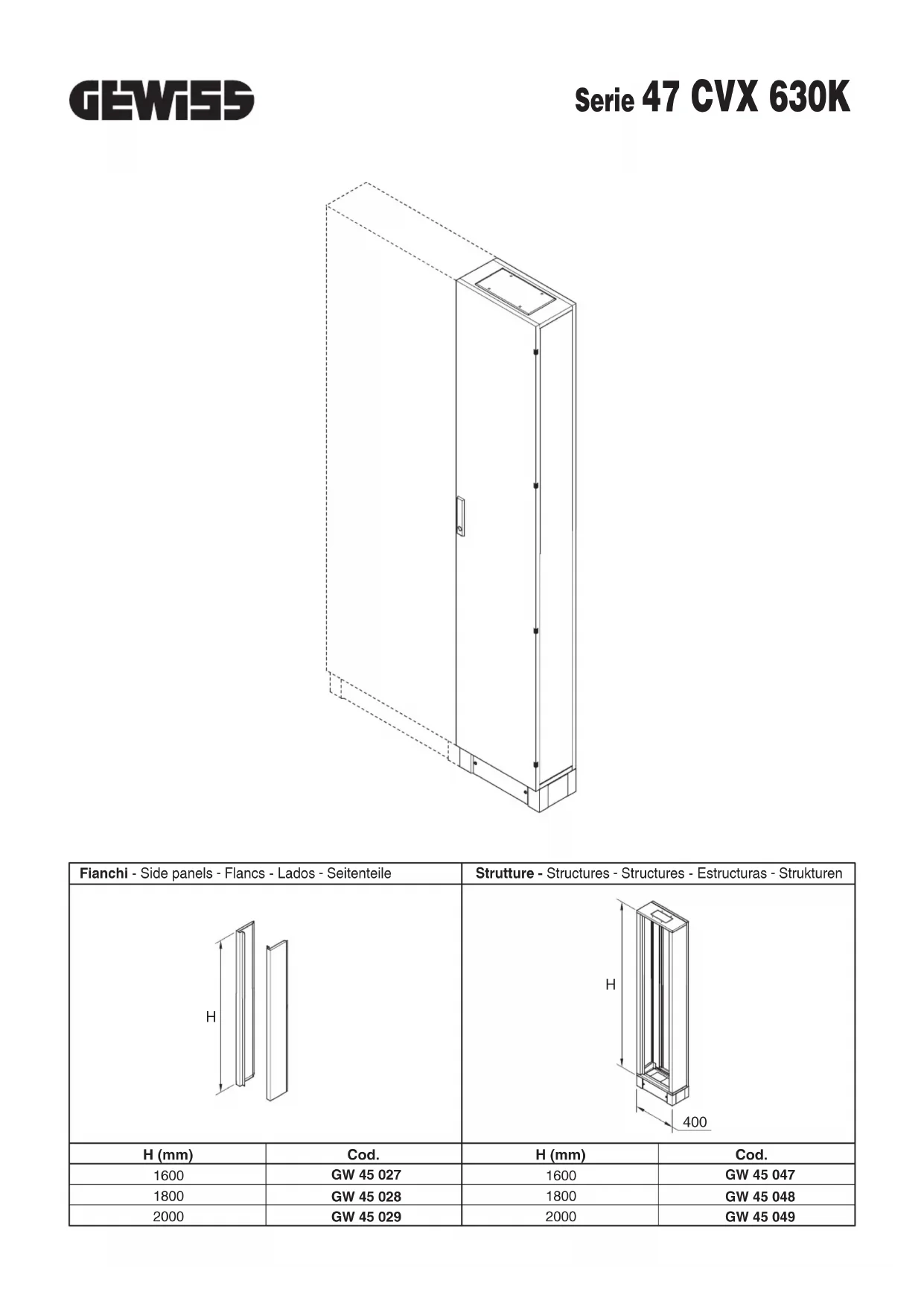 GW45047 - Armoire électrique Gewiss - Notice d'utilisation et mode d'emploi gratuit