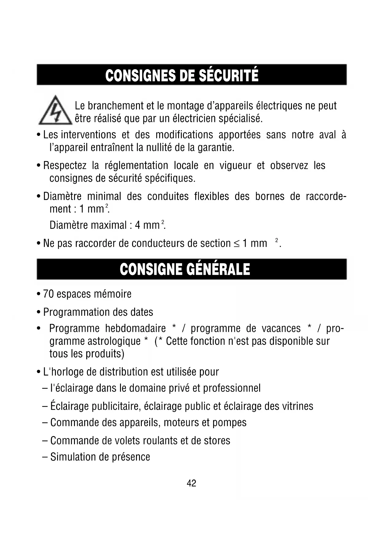 - Uniquement pour une utilisation dans des locaux secs !