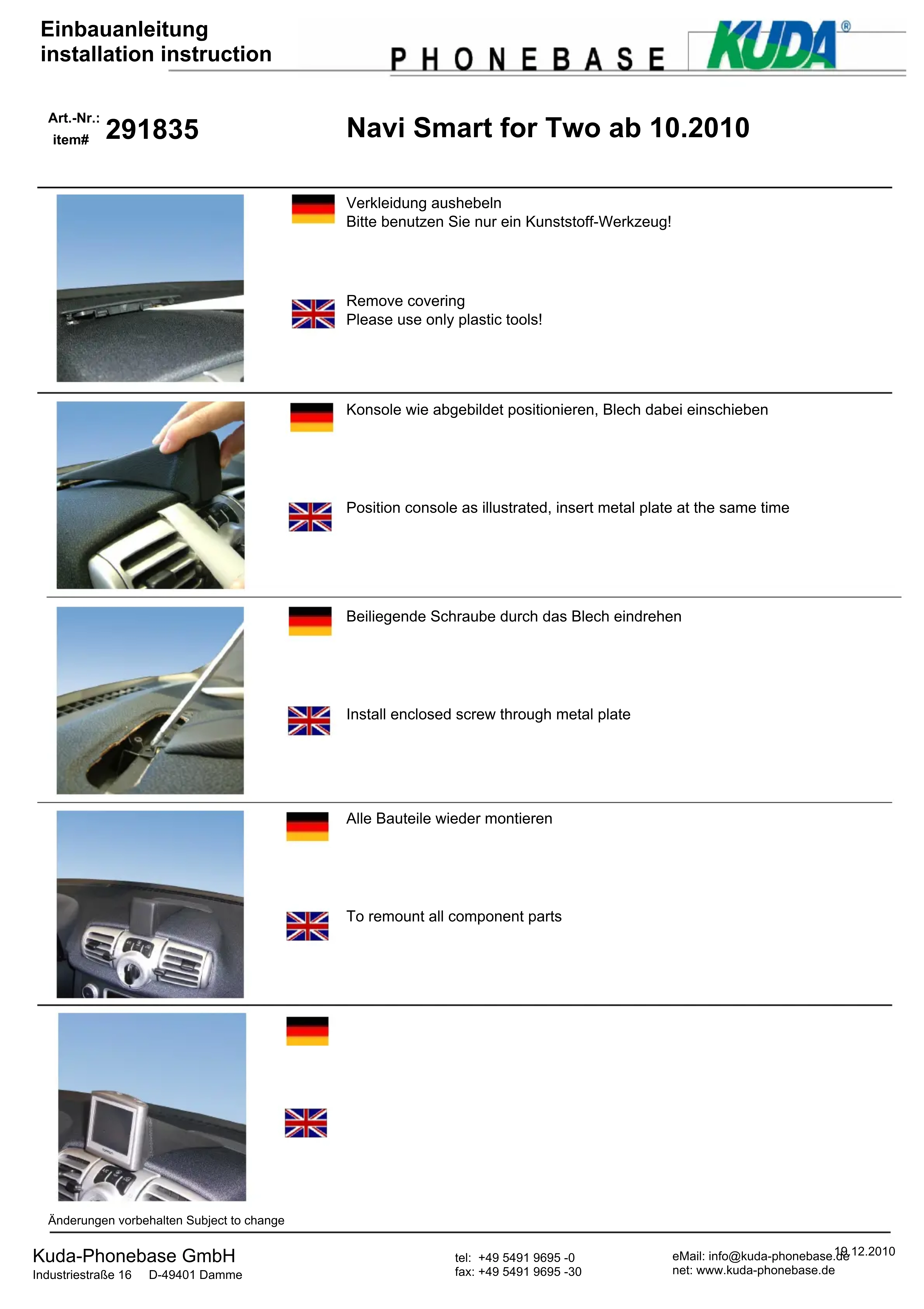 Retrouvez gratuitement la notice de l'appareil 291835 Kuda au format PDF.