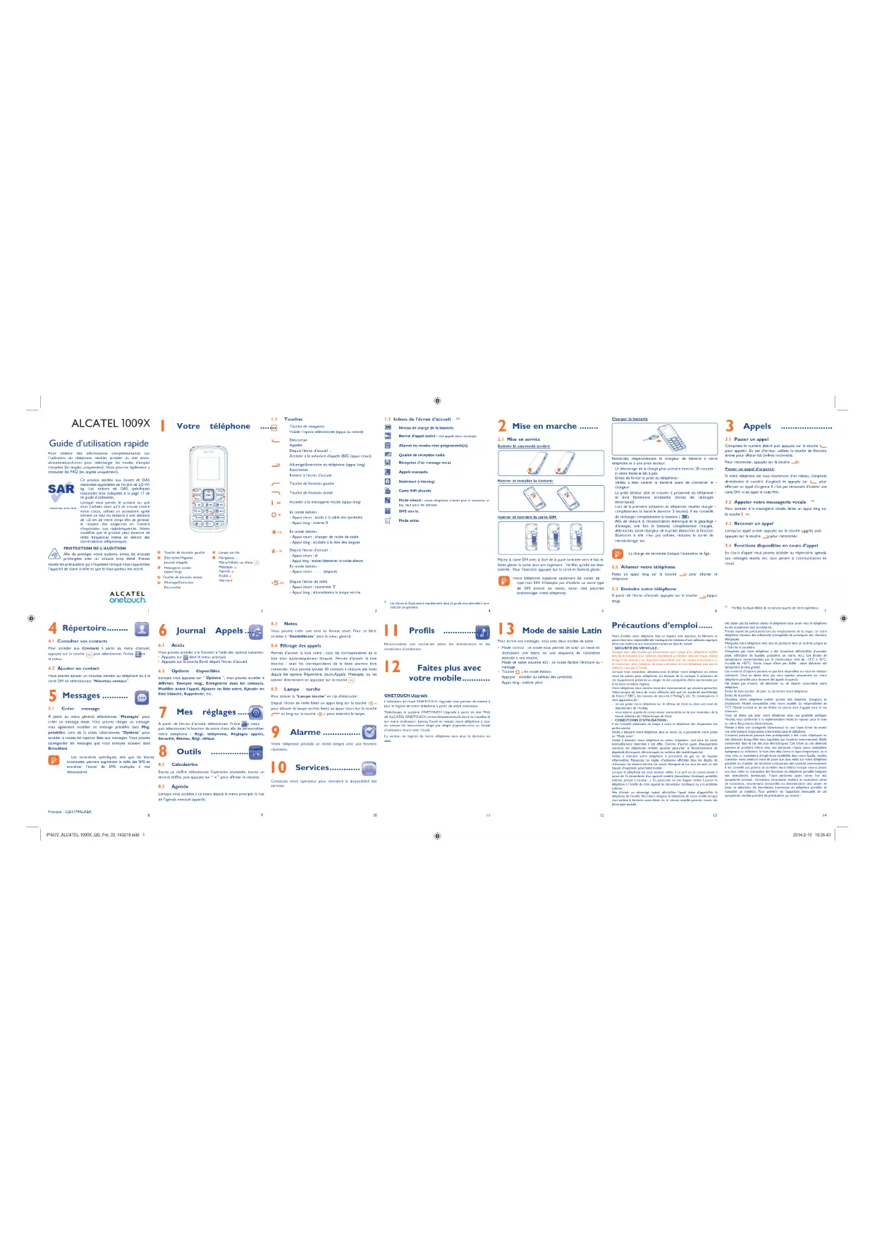 Navigateur : Menu/Valider un choix Messages Agenda Profils Alarme (1) Les icônes et illustrations représentées dans ce guide sont données à titre indicatif uniquement. IP4572_ALCATEL 1009X_QG_Fre_03_140219.indd 1IP4572_ALCATEL 1009X_QG_Fre_03_140219.indd 1 2014-2-19 16:35:402014-2-19 16:35:4015