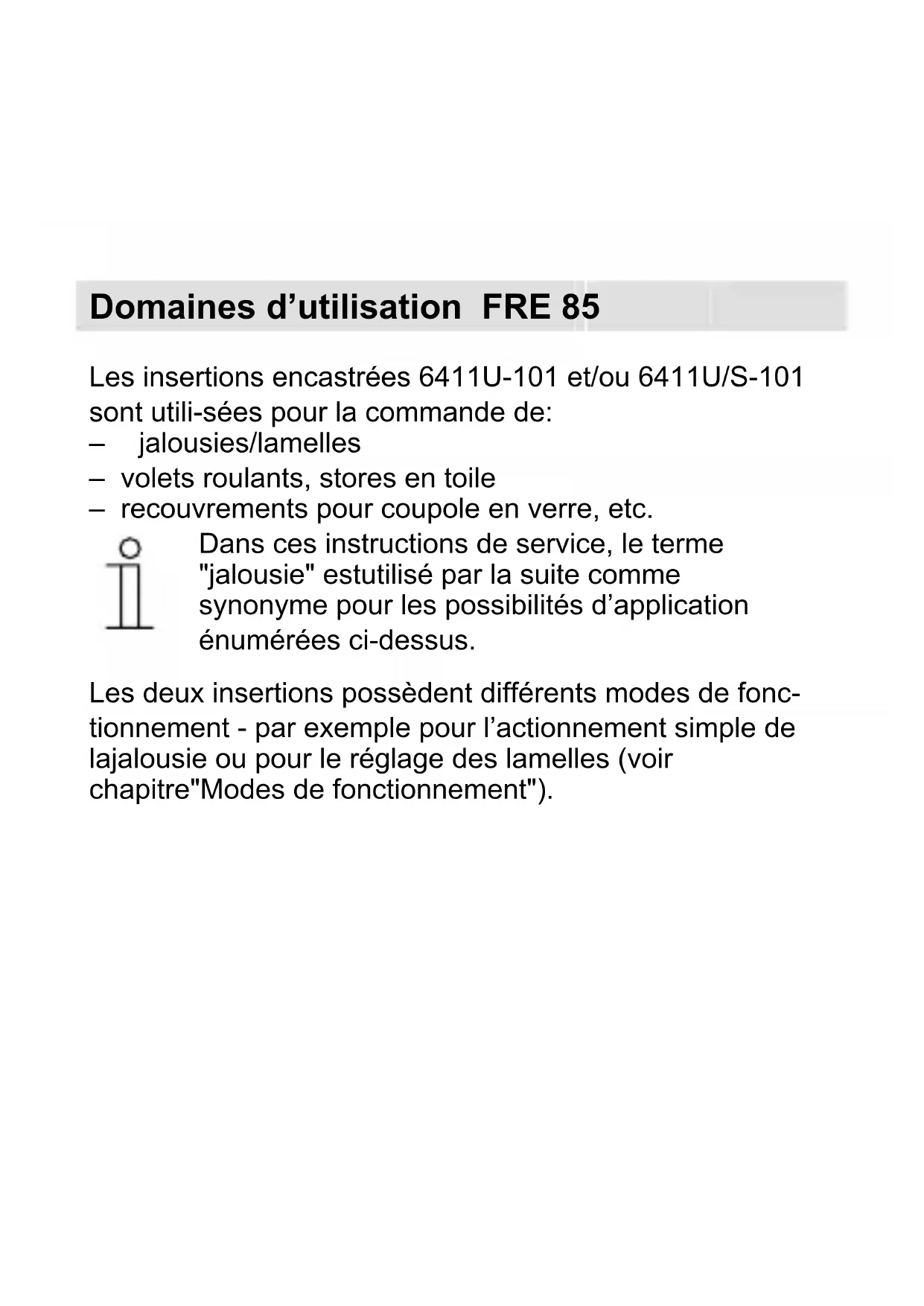 Les deux insertions possèdent différents modes de fonctionnement - par exemple pour l'actionnement simple de lajalousie ou pour le réglage des lamelles (voir chapitre"Modes de fonctionnement").