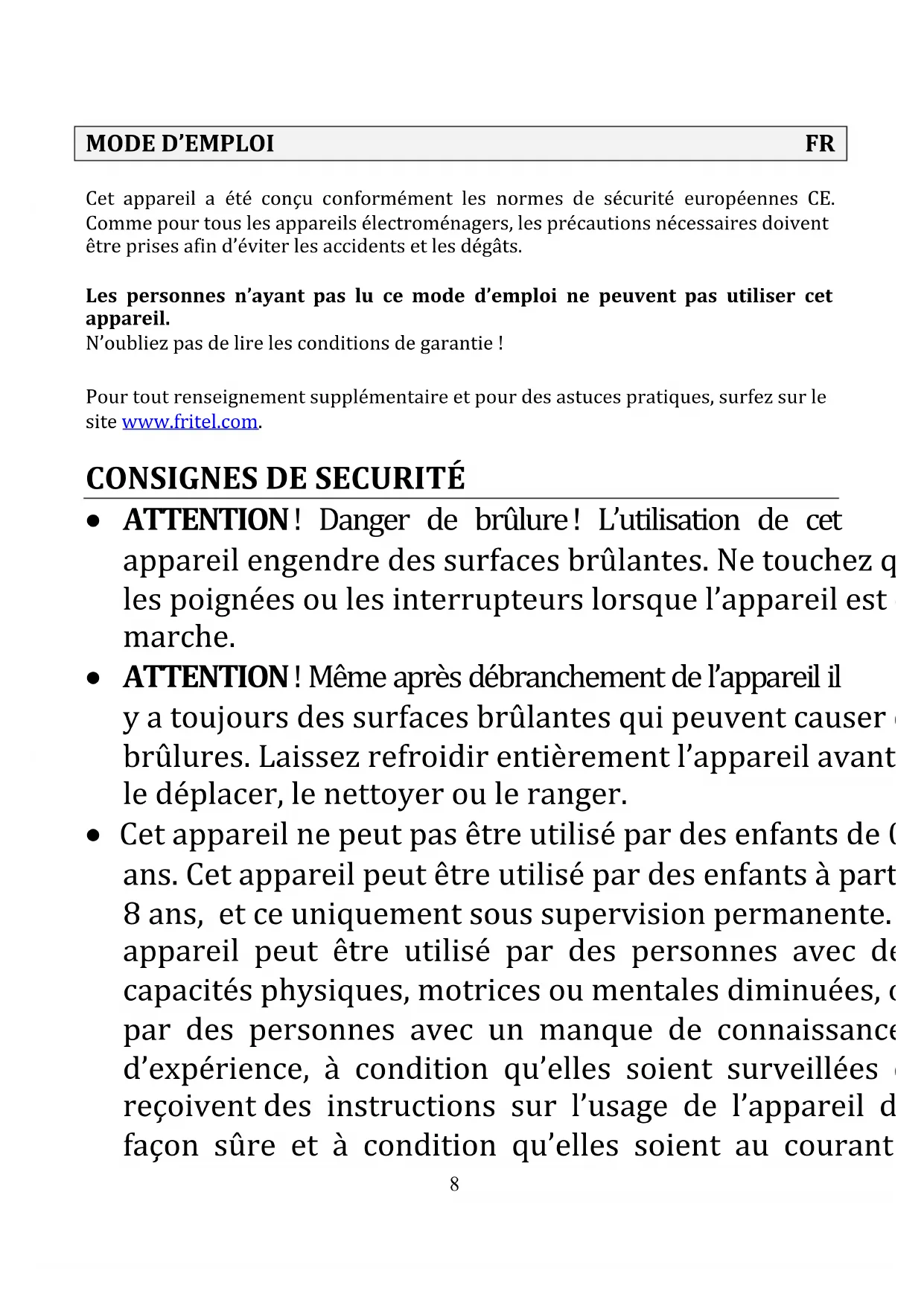 Pour tout renseignement supplémentaire, des recettes et pour des astuces pratiques, surfez sur le site www.fritel.com!