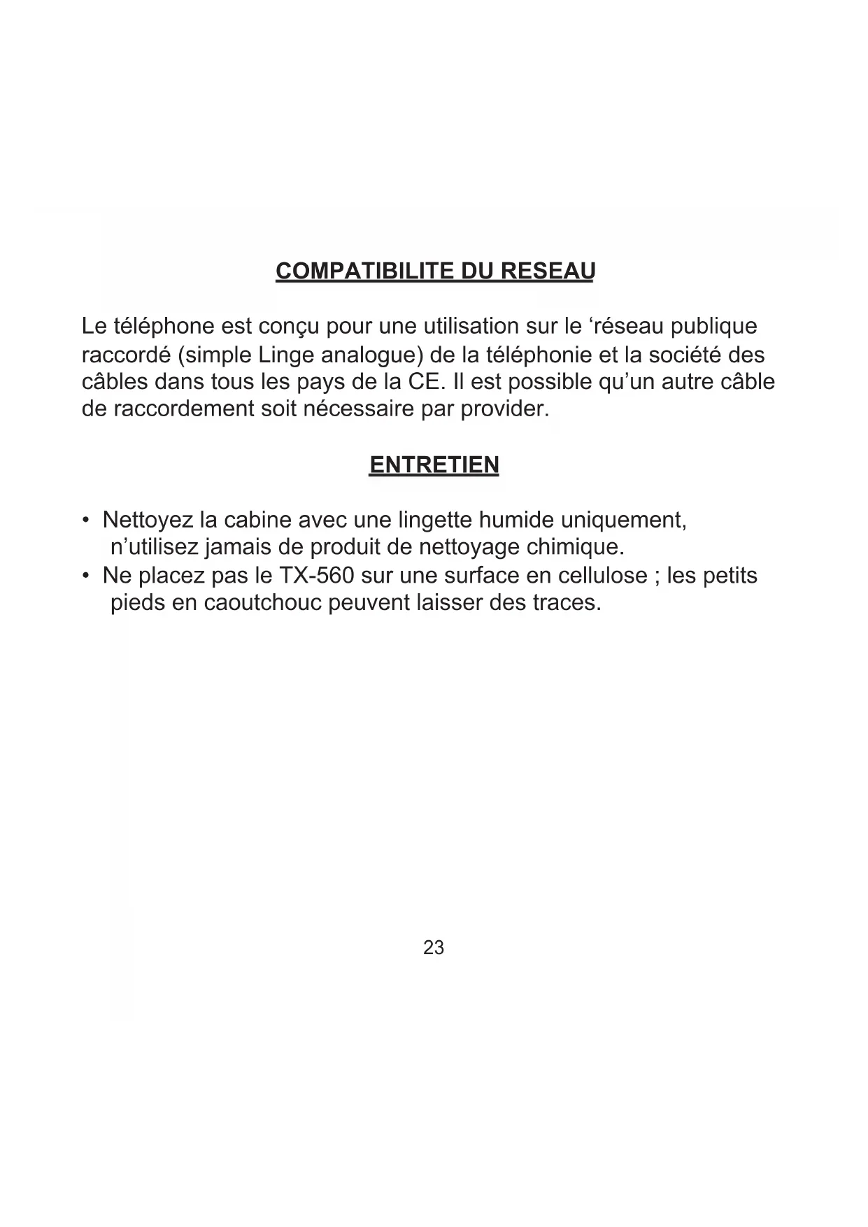 Le téléphone est conçu pour une utilisation sur le ‘réseau publique raccordé (simple Linge analogue) de la téléphonie et la société des câbles dans tous les pays de la CE. Il est possible qu’un autre câble de raccordement soit nécessaire par provider.