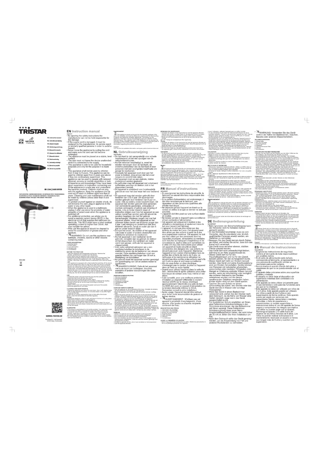 HD2366 - Sèche-cheveux TRISTAR - Notice d'utilisation et mode d'emploi gratuit