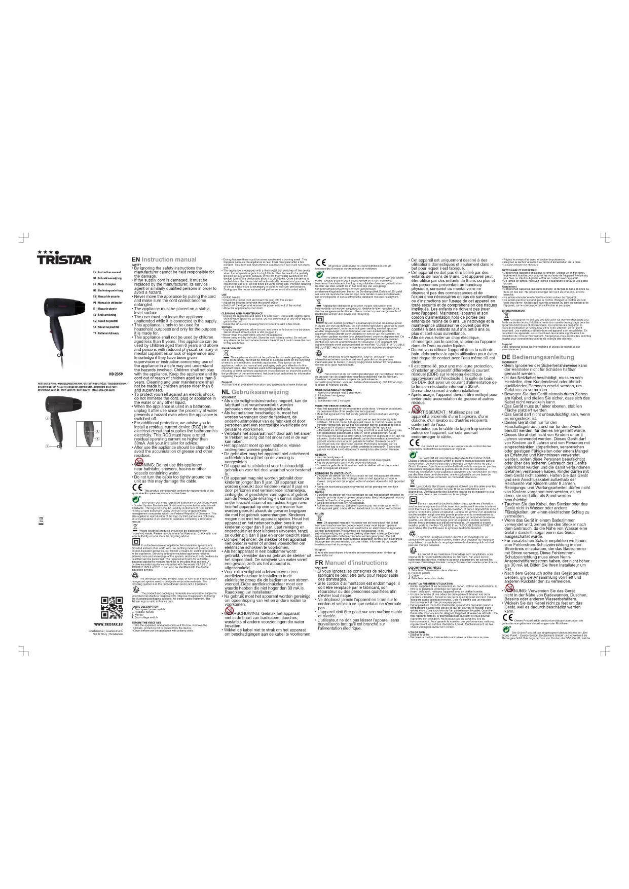 HD2359 - Sèche-cheveux TRISTAR - Notice d'utilisation et mode d'emploi gratuit