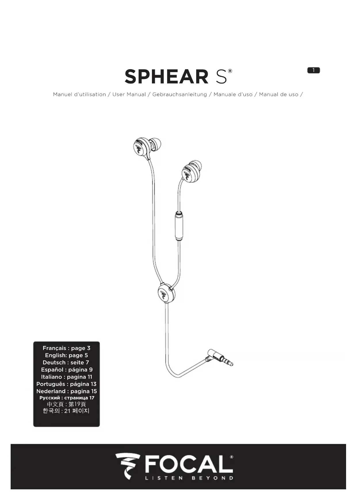 Sphear S - Ecouteur FOCAL - Notice d'utilisation et mode d'emploi gratuit