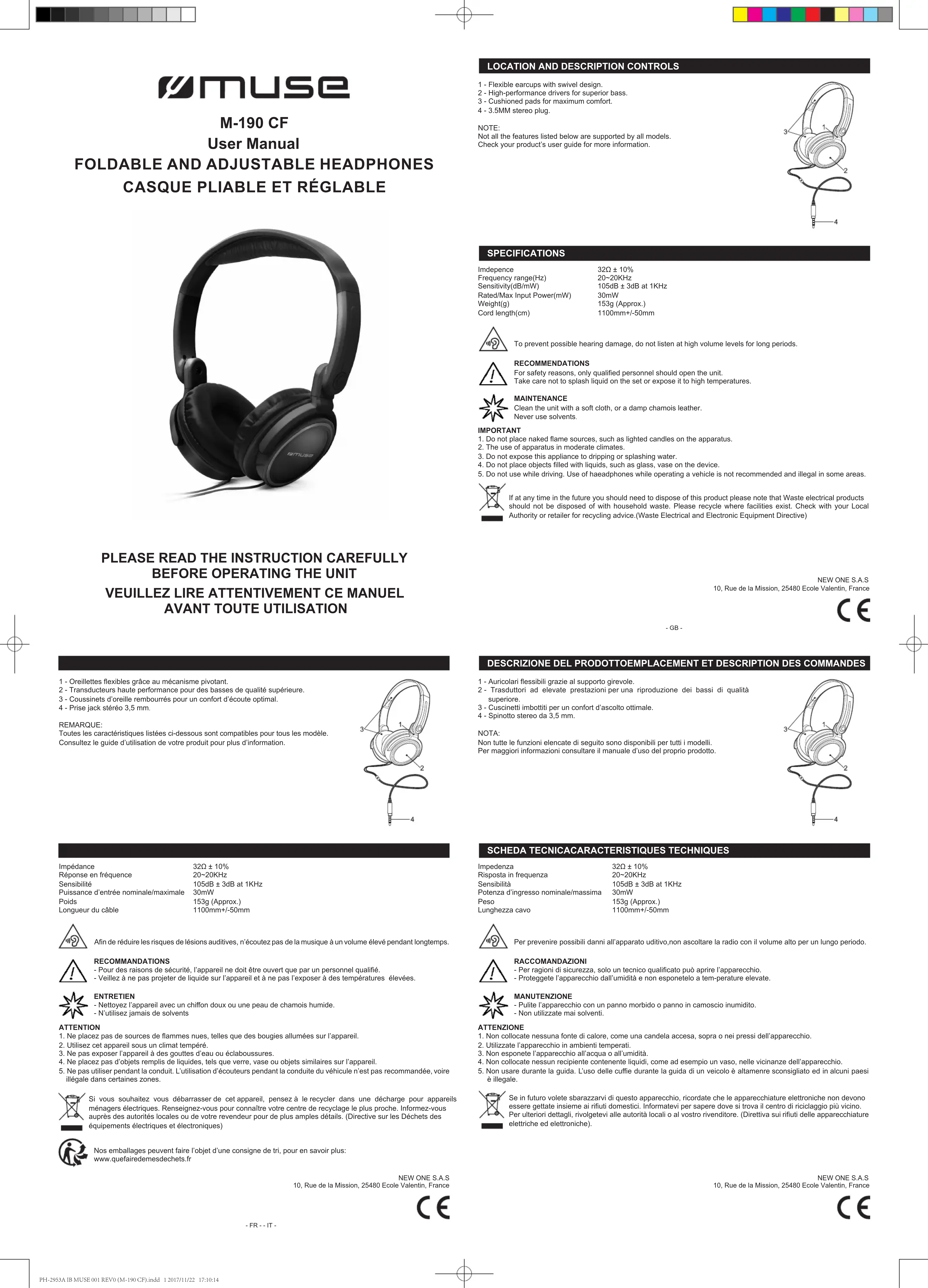 M190 CF - Ecouteur MUSE - Notice d'utilisation et mode d'emploi gratuit