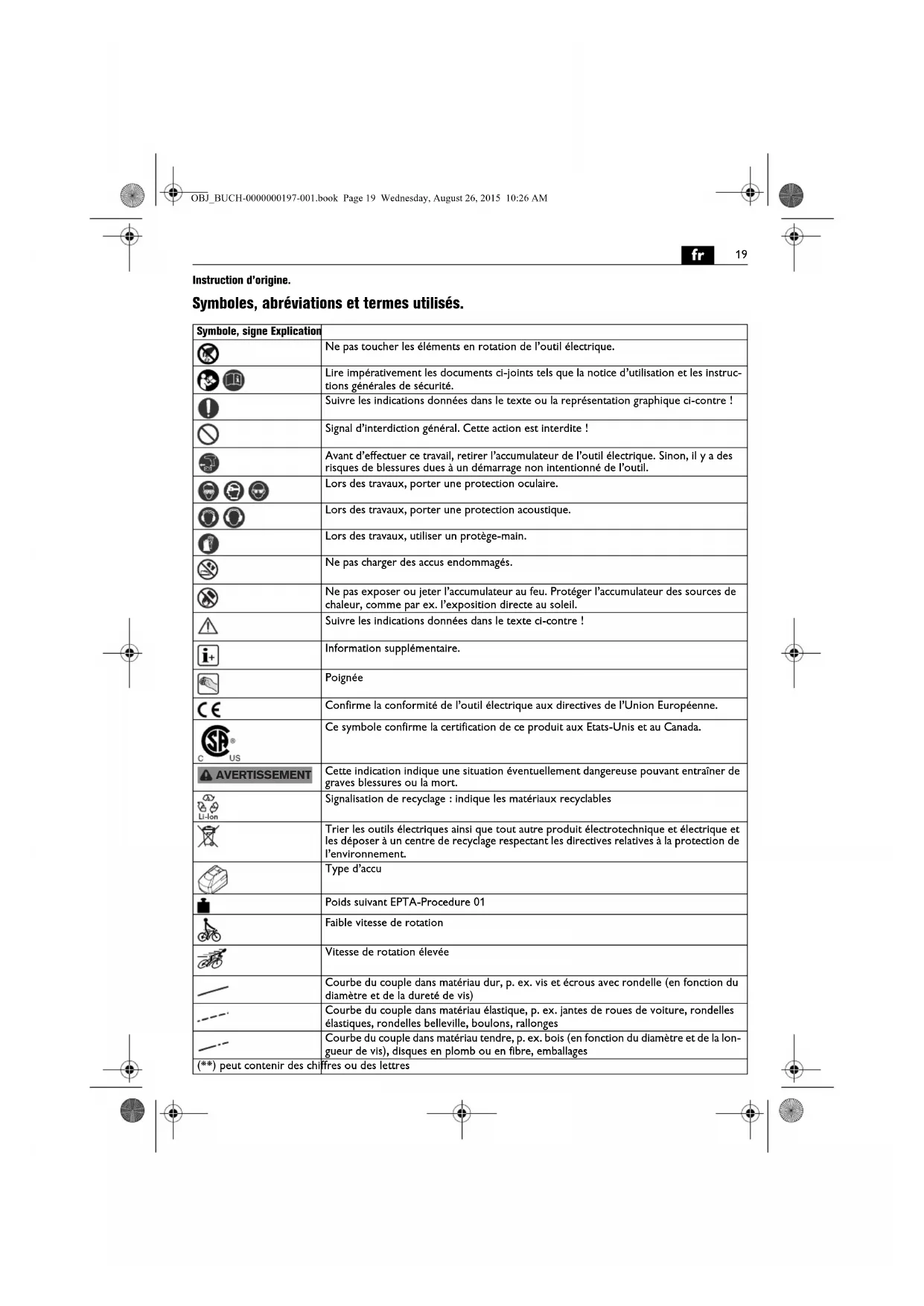 N'utilisez que des accumulateurs intacts d'origine FEIN conçus pour votre outil électrique. Lors du travail avec et lors du chargement d'accumulateurs d'un type ne convenant pas à l'outil, d'accumulateurs endommagés, réparés ou modifiés, d'accumulateurs contrefaits ou d'autres fabricants, il y a danger d'incendie et/ou d'explosion.