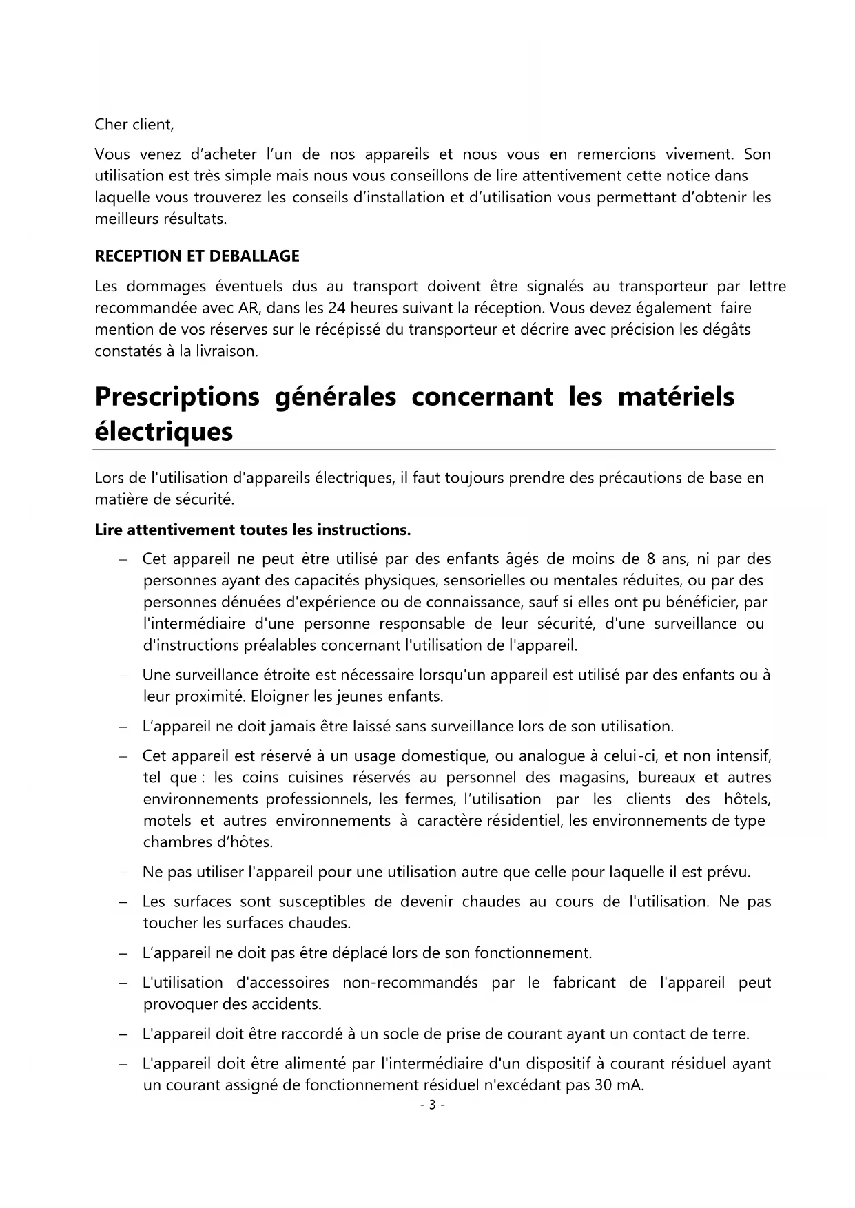 Vous venez d'acheter l'un de nos apparèils et nous vous en remercions vivement. Son utilisation est très simple mais nous vous conseillons de dire attentivement cette notice dans laquelle vous trouvez les conseils d'installation et d'utilisation vous permettant d'obtenir les salariés résultats.