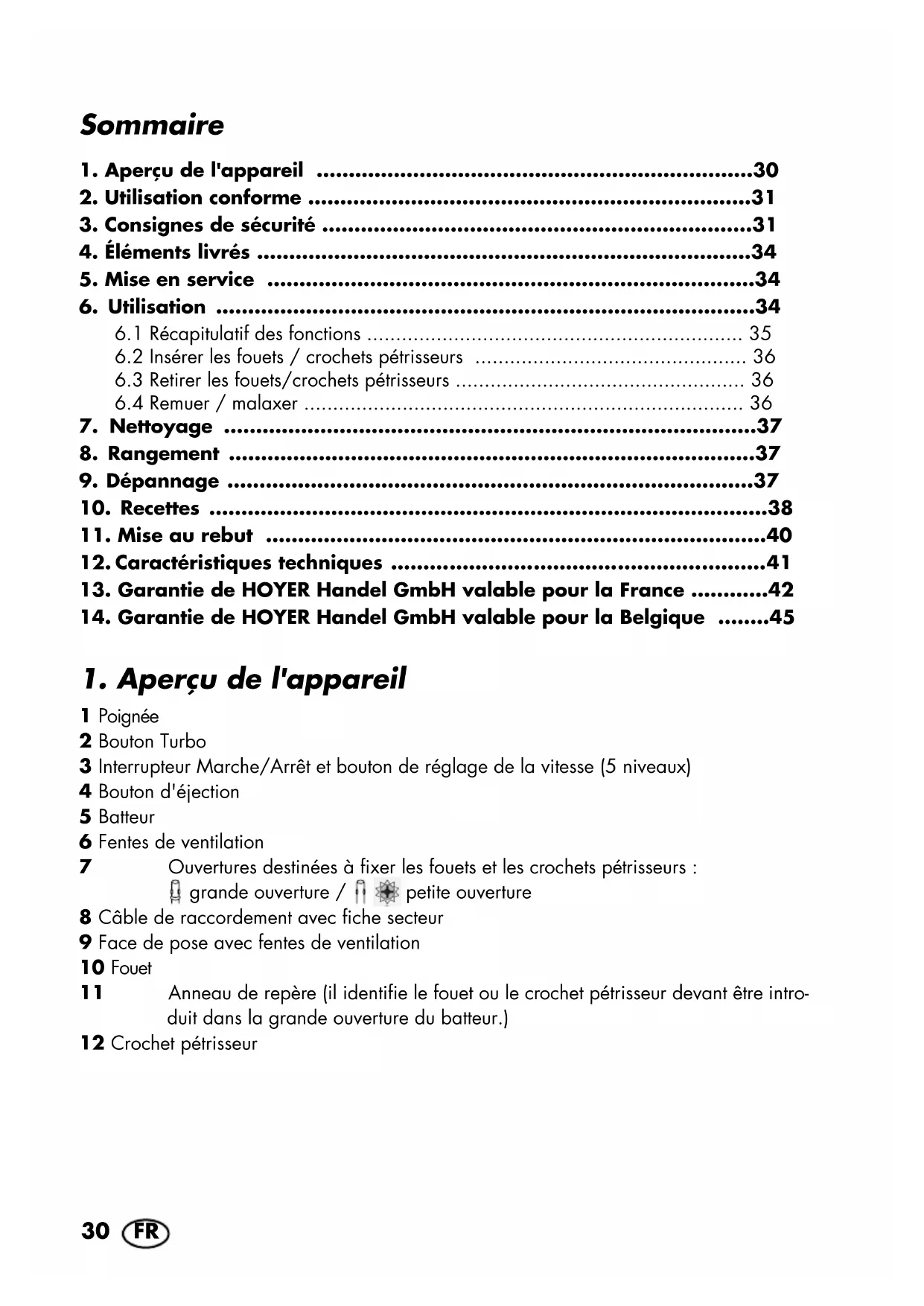 13. Garantie de HOYER Handel GmbH valable pour la France ............42