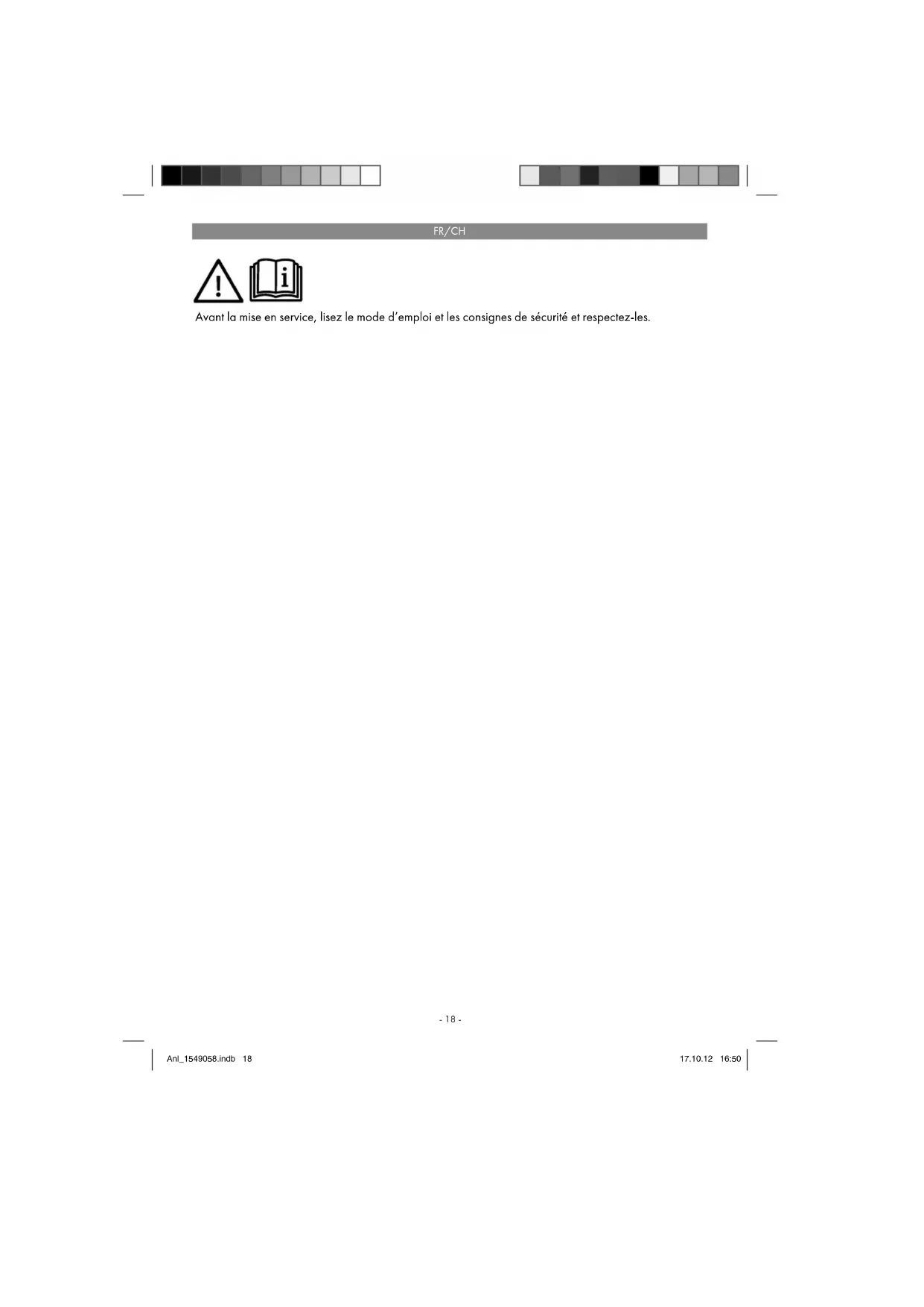 Avant la mise en service, lisez le mode d’emploi et les consignes de sécurité et respectez-les. Anl_1549058.indb 18Anl_1549058.indb 18 17.10.12 16:5017.10.12 16:50FR/CH