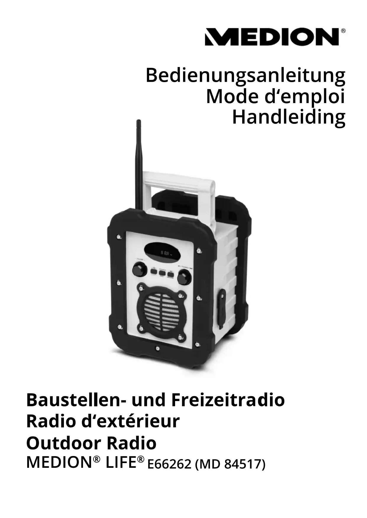 Téléchargez la notice de votre Radio au format PDF gratuitement ! Retrouvez votre notice E66262 - MEDION et reprennez votre appareil électronique en main. Sur cette page sont publiés tous les documents nécessaires à l'utilisation de votre appareil E66262 de la marque MEDION.