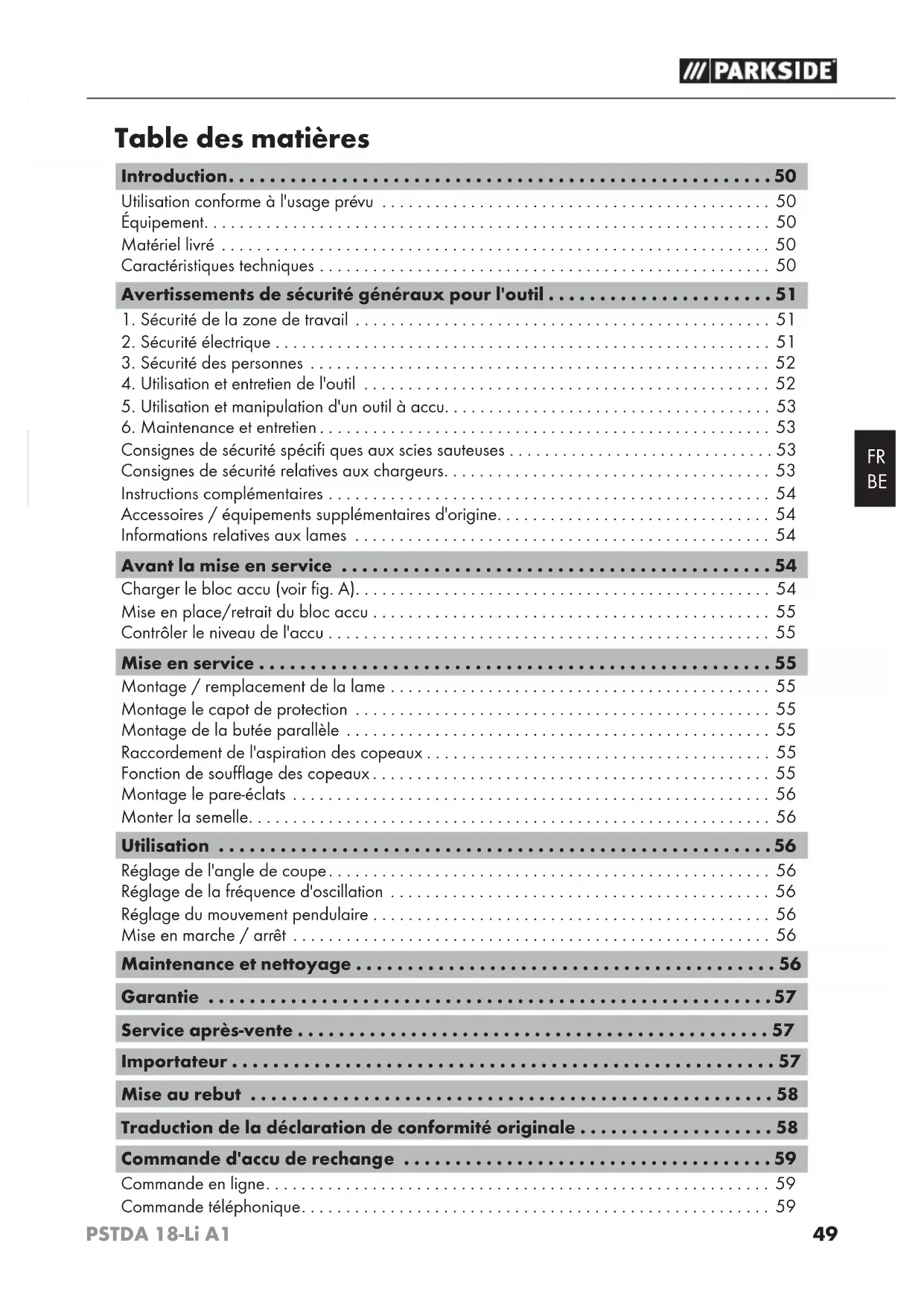 PSTDA 18Li A1 - Scie PARKSIDE - Notice d'utilisation et mode d'emploi gratuit