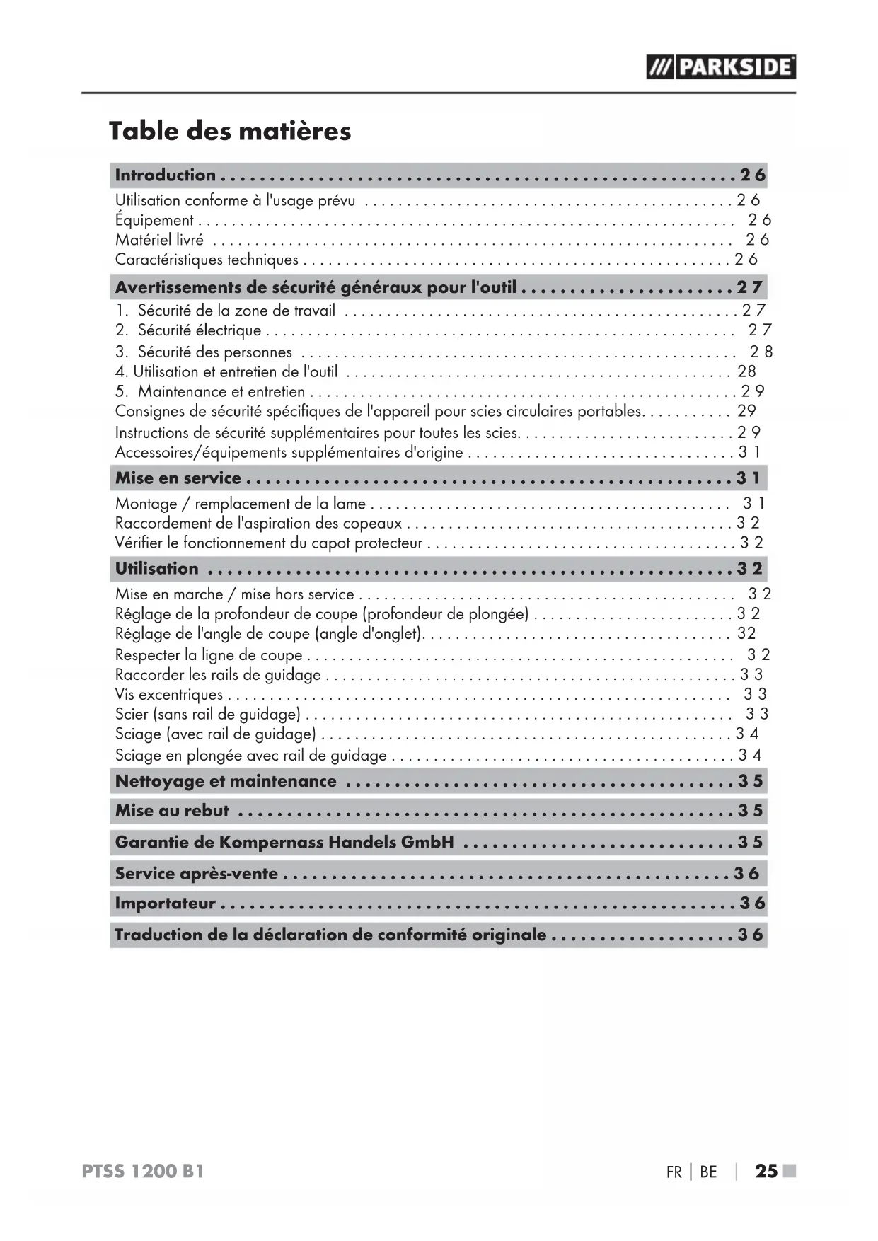 FOIRE AUX QUESTIONS - PTSS 1200 B1 PARKSIDE