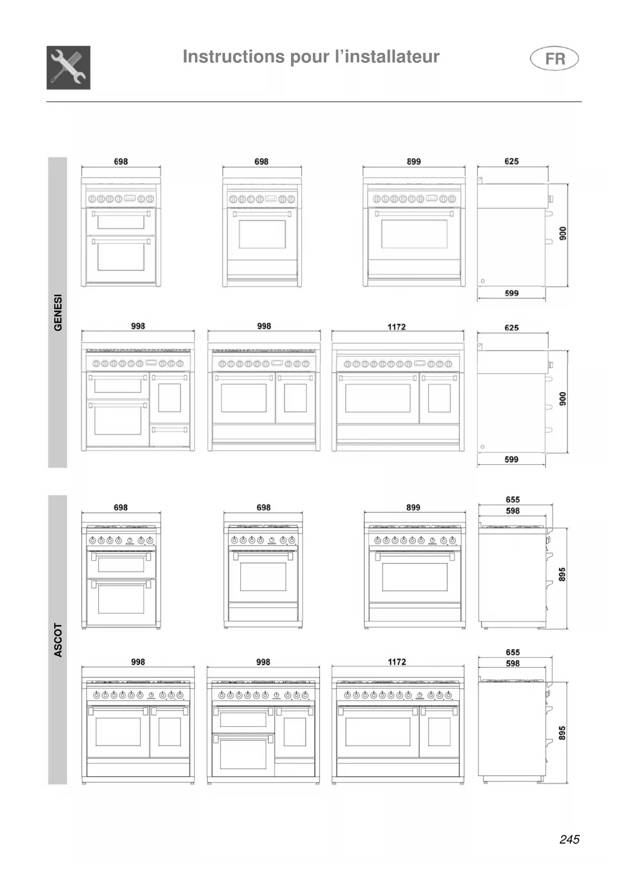 DIMENSIONS DES CUISINIÈRES (mm) SINTESIInstructions pour l’installateur