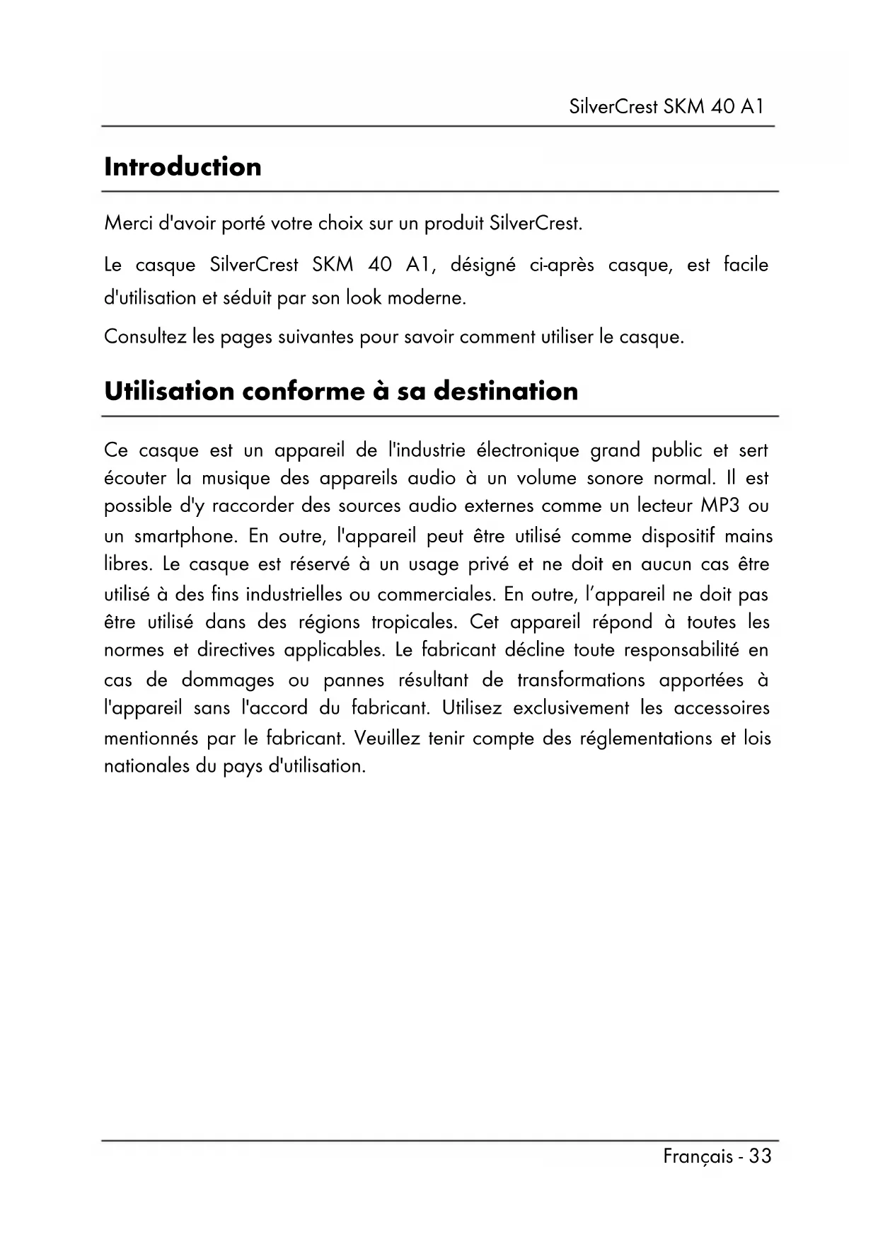 Le casque SilverCrest SKM 40 A1, désigné ci-après casque, est facile d'utilisation et séduit par son look moderne.