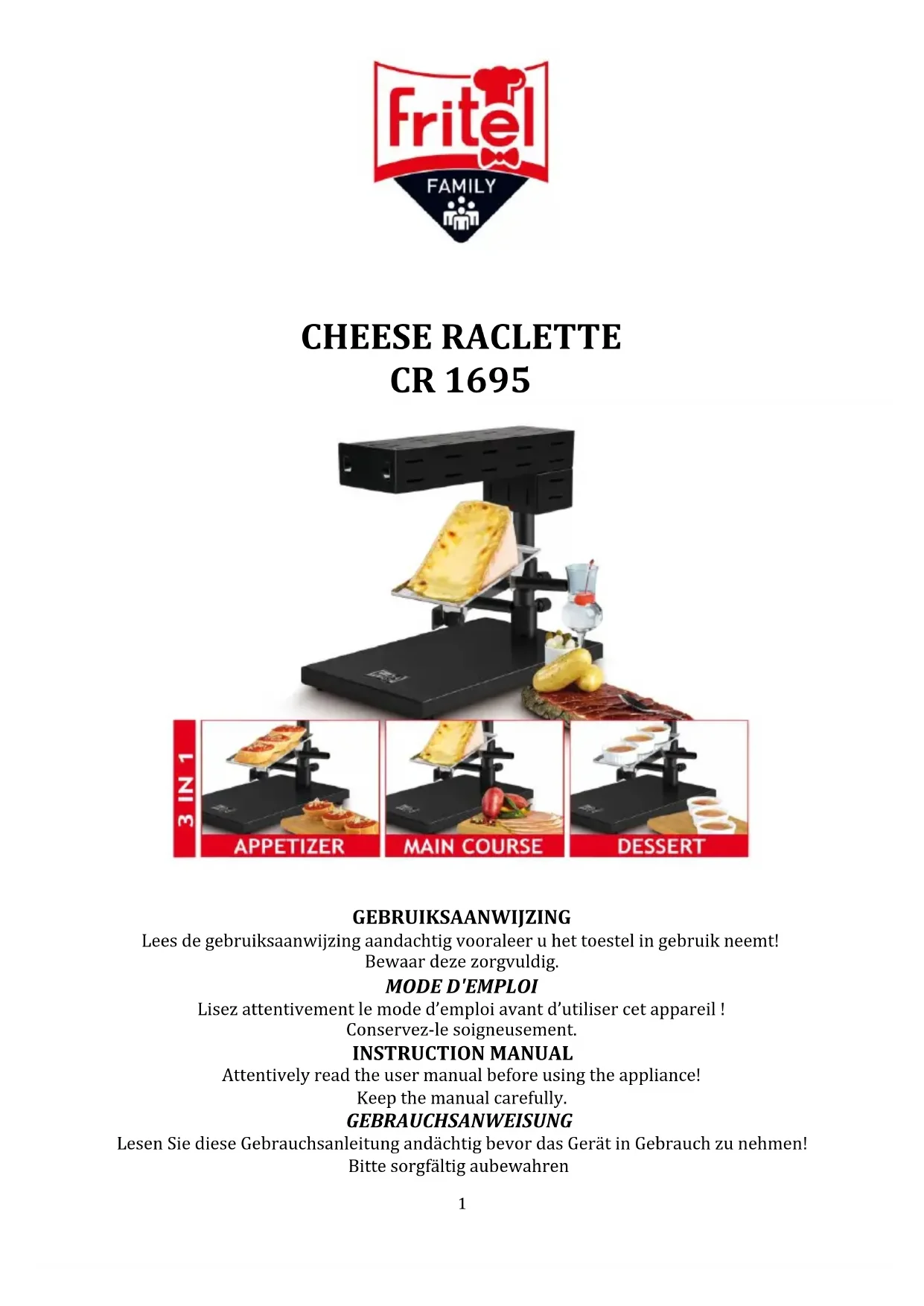 CR 1695 - Appareil à fondue, raclette et wok FRITEL - Notice d'utilisation et mode d'emploi gratuit