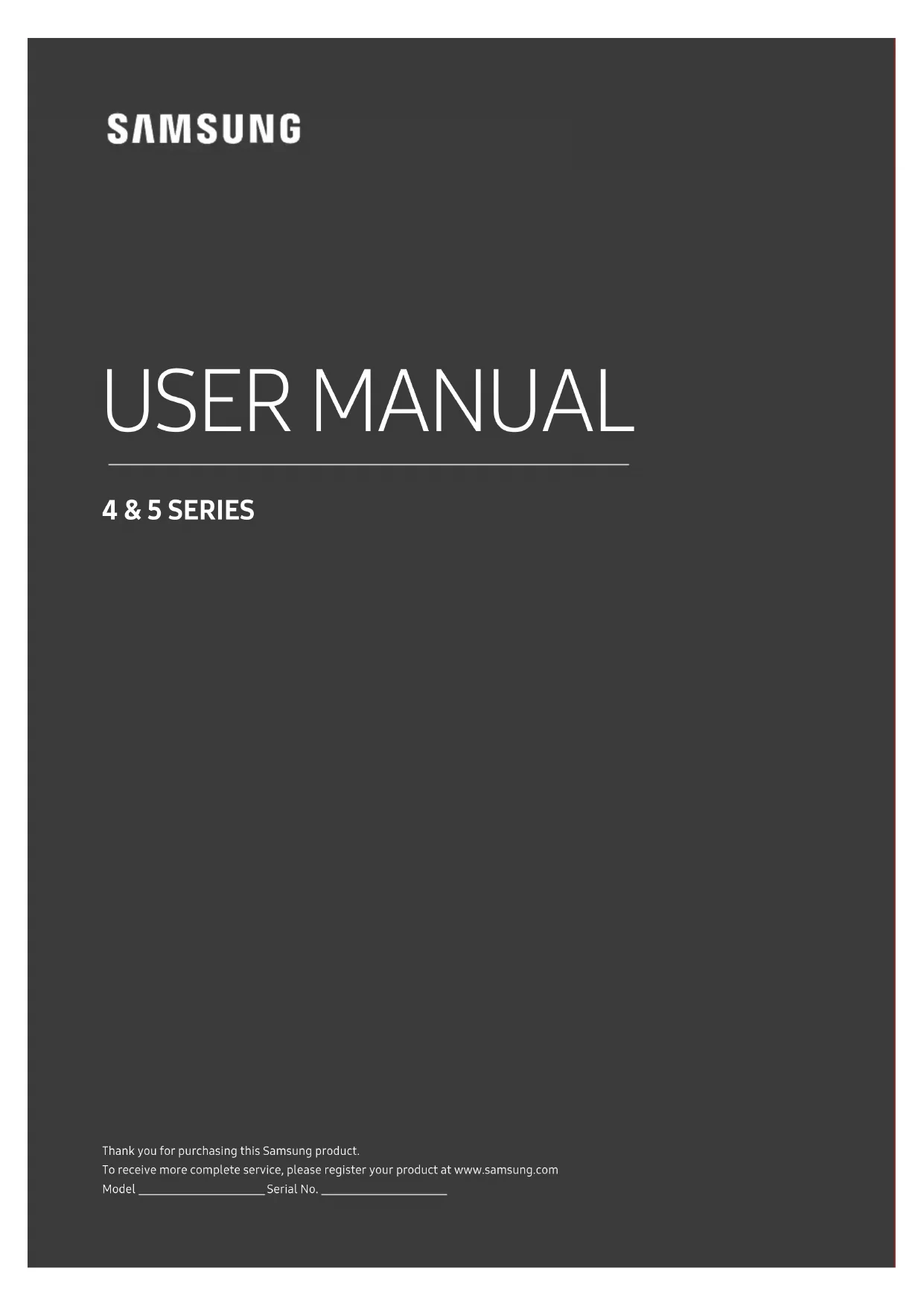 - Optimal resolution depends on your model. English - 32This page is intentionally left blank.Avant de lire le présent manuel de l'utilisateur Ce téléviseur est fourni avec le présent manuel de l'utilisateur et un manuel électronique intégré. Avant de lire le présent manuel de l'utilisateur, lisez les informations suivantes: Guide d'utilisation Lisez le manuel de l'utilisateur fourni pour obtenir des informations sur la sécurité, l'installation, les accessoires, la configuration initiale et les spécifications du produit. e-Manual Pour en savoir plus sur ce téléviseur, lisez le manuel électronique intégré au produit.