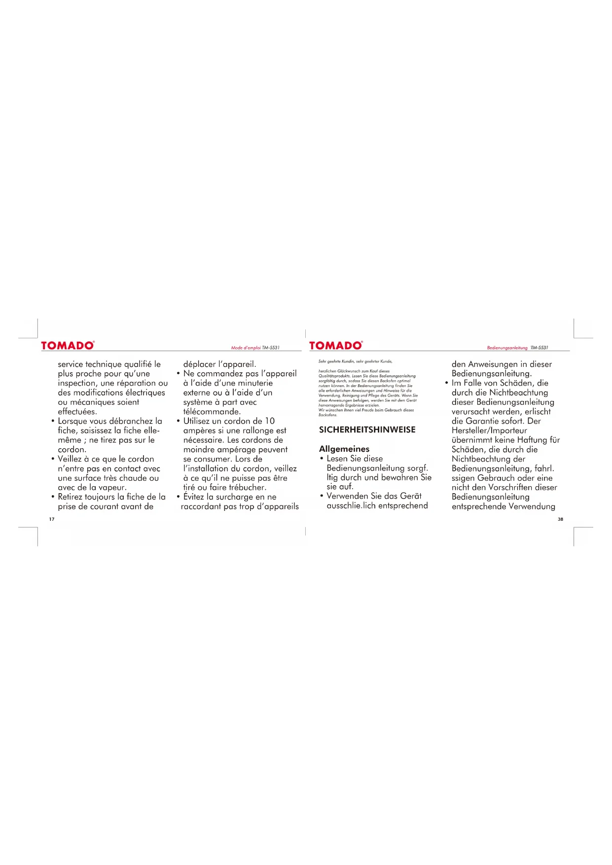 Retrouvez gratuitement la notice de l'appareil TM5531 Tomado au format PDF.