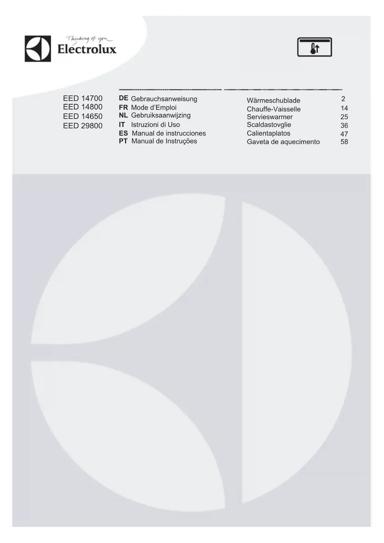 EED14650OX - Tiroir et armoire chauffants ELECTROLUX - Notice d'utilisation et mode d'emploi gratuit